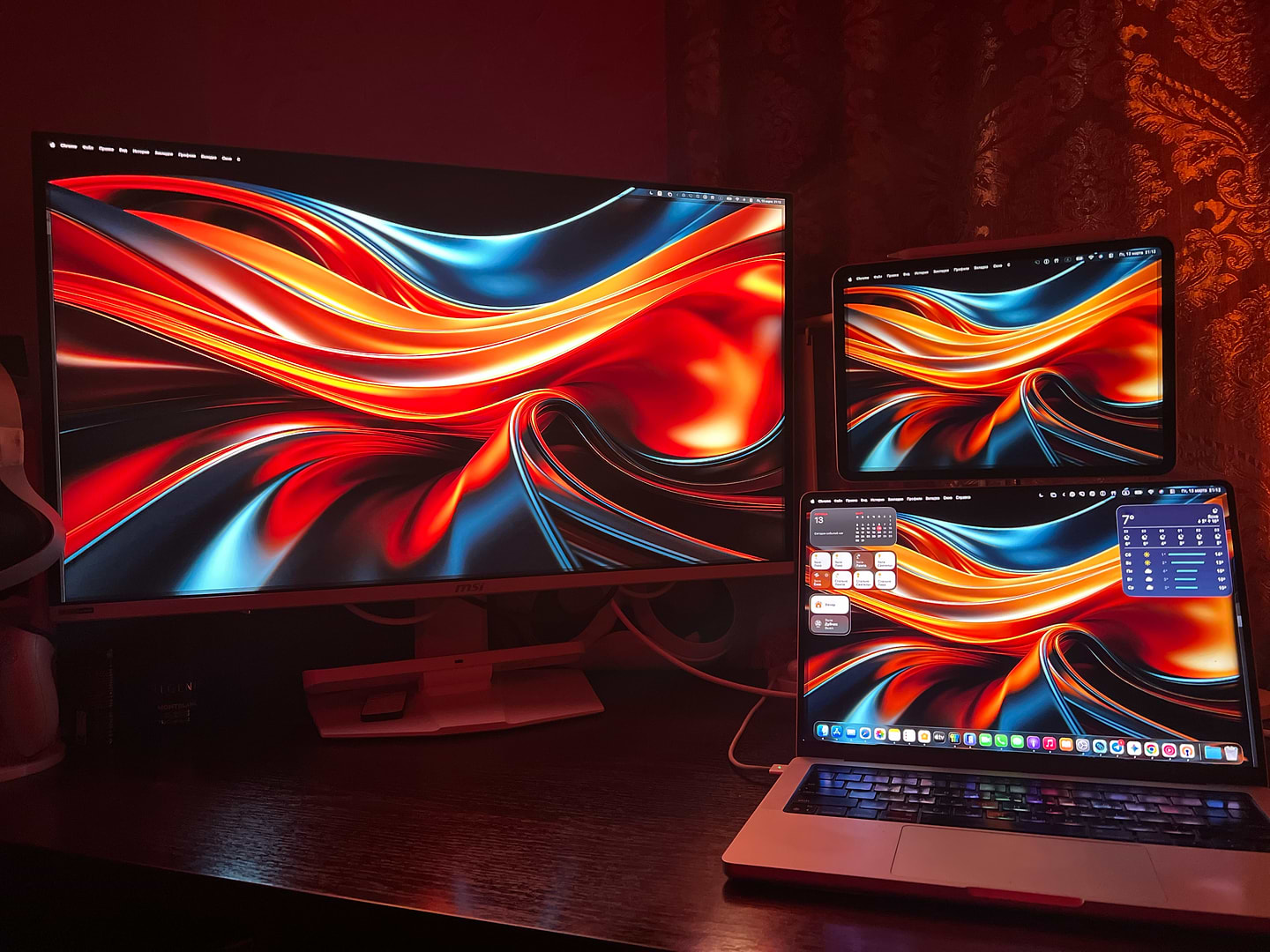 Для работы есть режимы офис и DCI-P3. Первый уменьшает фрингинг текста характерный для всех OLED-мониторов. Второй для работы с цветом в видео, фото, картинками.