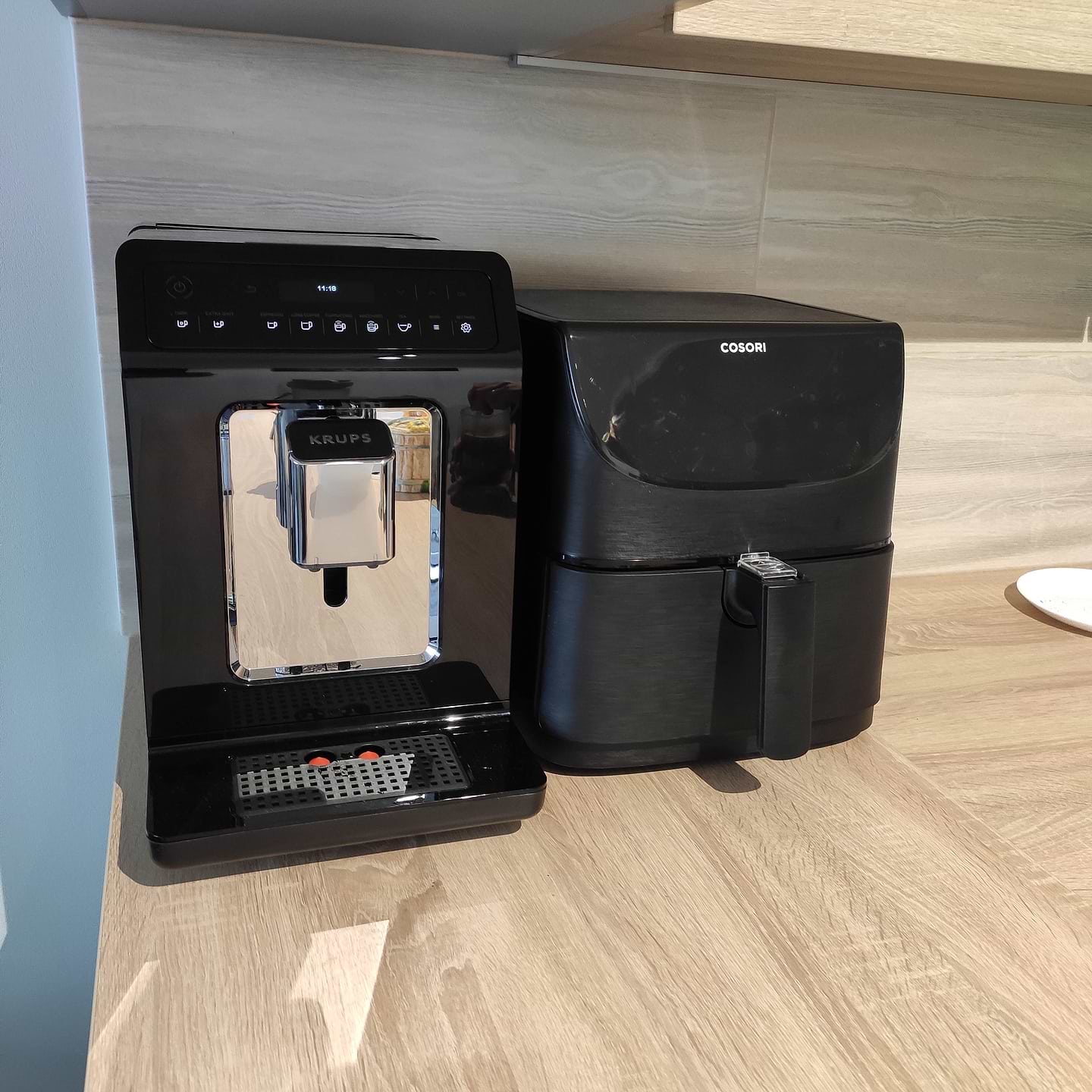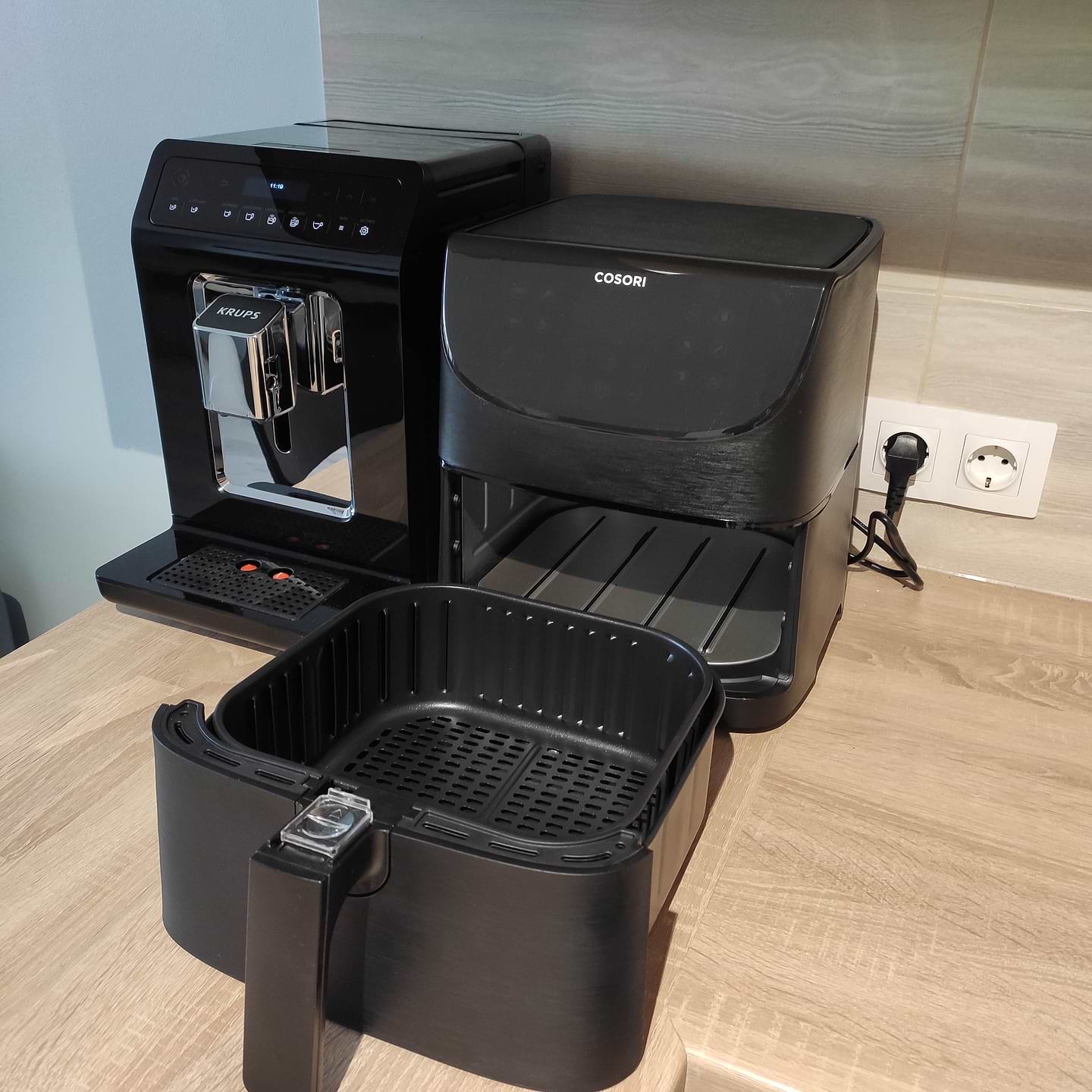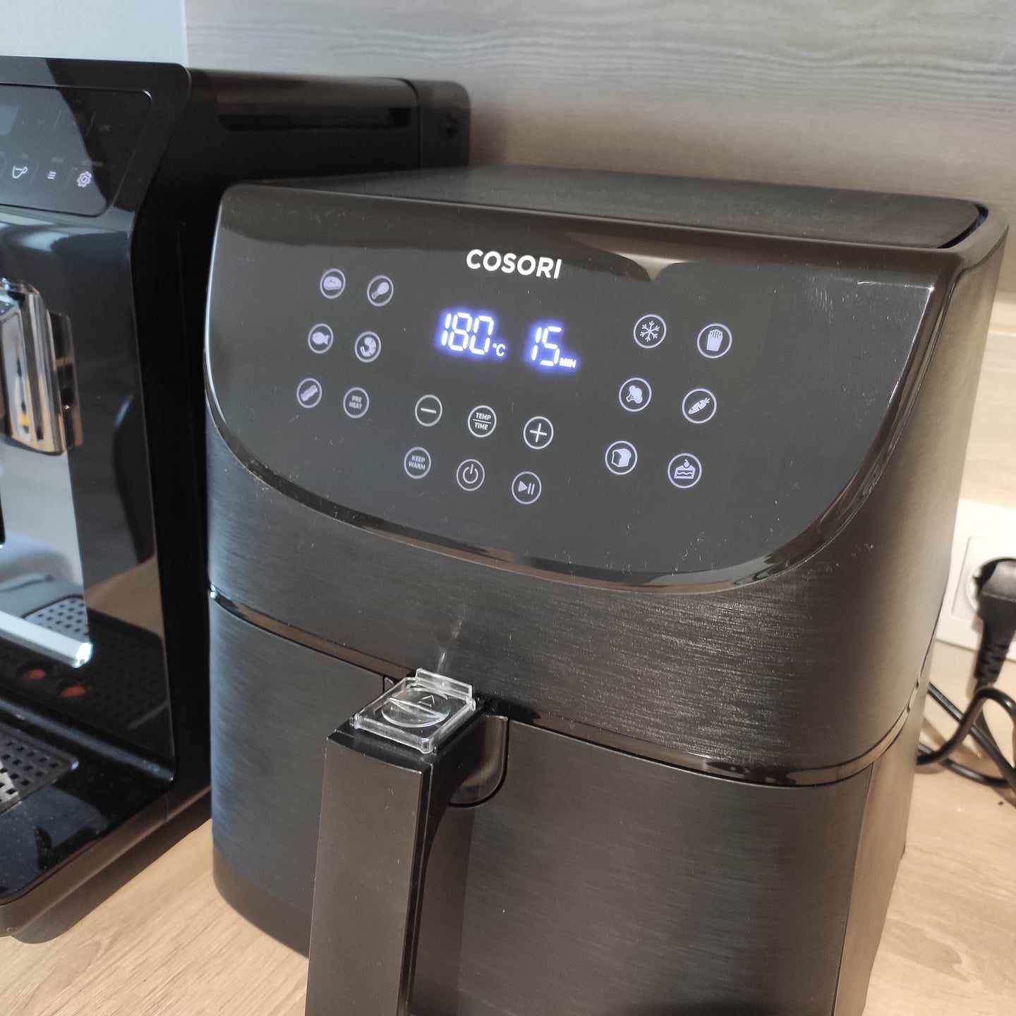 Жена загорелась мультипечью, пришлось покупать. Выбор был между Cosori, Tefal и Philips. Приехали в Comfy, глянули на Tefal, не понравилась (объем маловат, да и форма самой мультипечи не очень), остановились на Philips (хотя внешне тоже не сильно понравилась), так как Cosori не было в наличие, чтобы глянуть, да и бренд нам неизвестный. На следующий день уже собирались заказывать Philips, но тут подоспела акция (-2000грн) на Cosori. Почитав отзывы, а они на 90% положительные, было решено все таки брать Cosori. Внешне мультипечь очень прикольная, функционала более чем достаточно. Поверхность черная матовая (под шлифованный металл), четко вписалась на кухню. А вот сенсорная панель управления глянцевая и быстро собирает отпечатки и царапины (это нам известно по глянцевой кофемашине). Ковши изнутри покрыты тефлоновым антипригарным покрытием (легко отмываются). Первым делом сделали картошку фри: быстрая готовка и очень вкусно. Сколько прослужит, будет видно со временем, гарантия 1год.