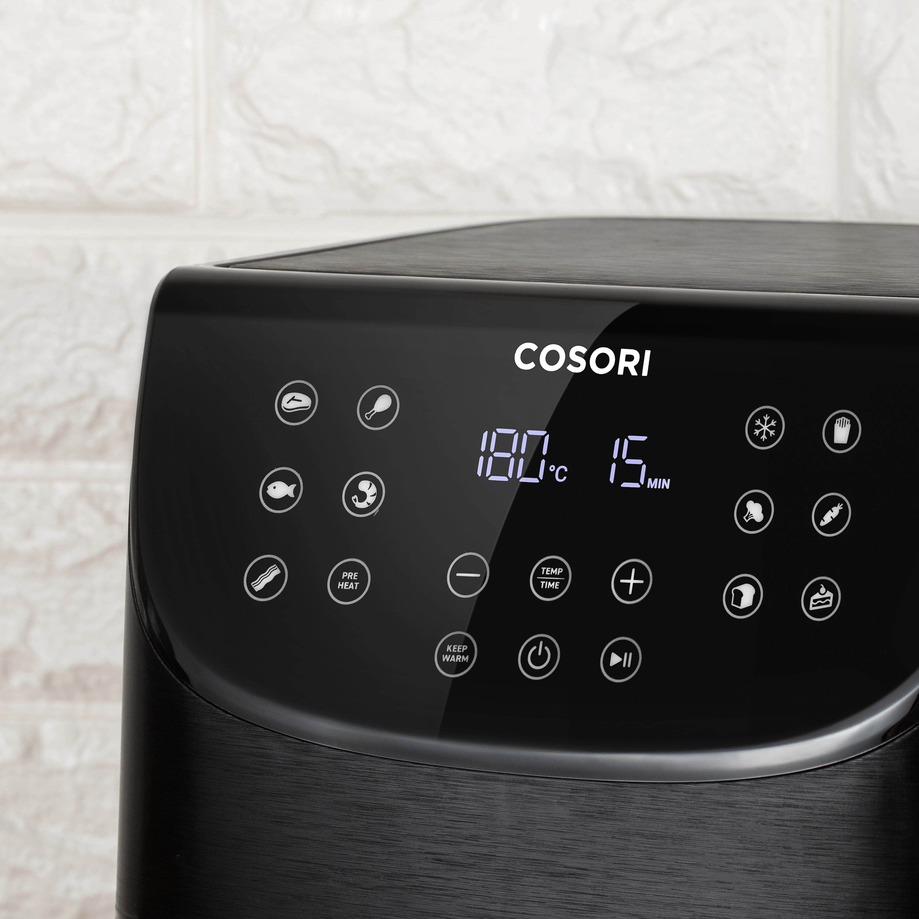 Cosori Smart оснащена світлодіодною сенсорною панеллю, з якою дуже легко розібратися. На ній розташовані основні режими, додаткові функції та інші потрібні характеристики.