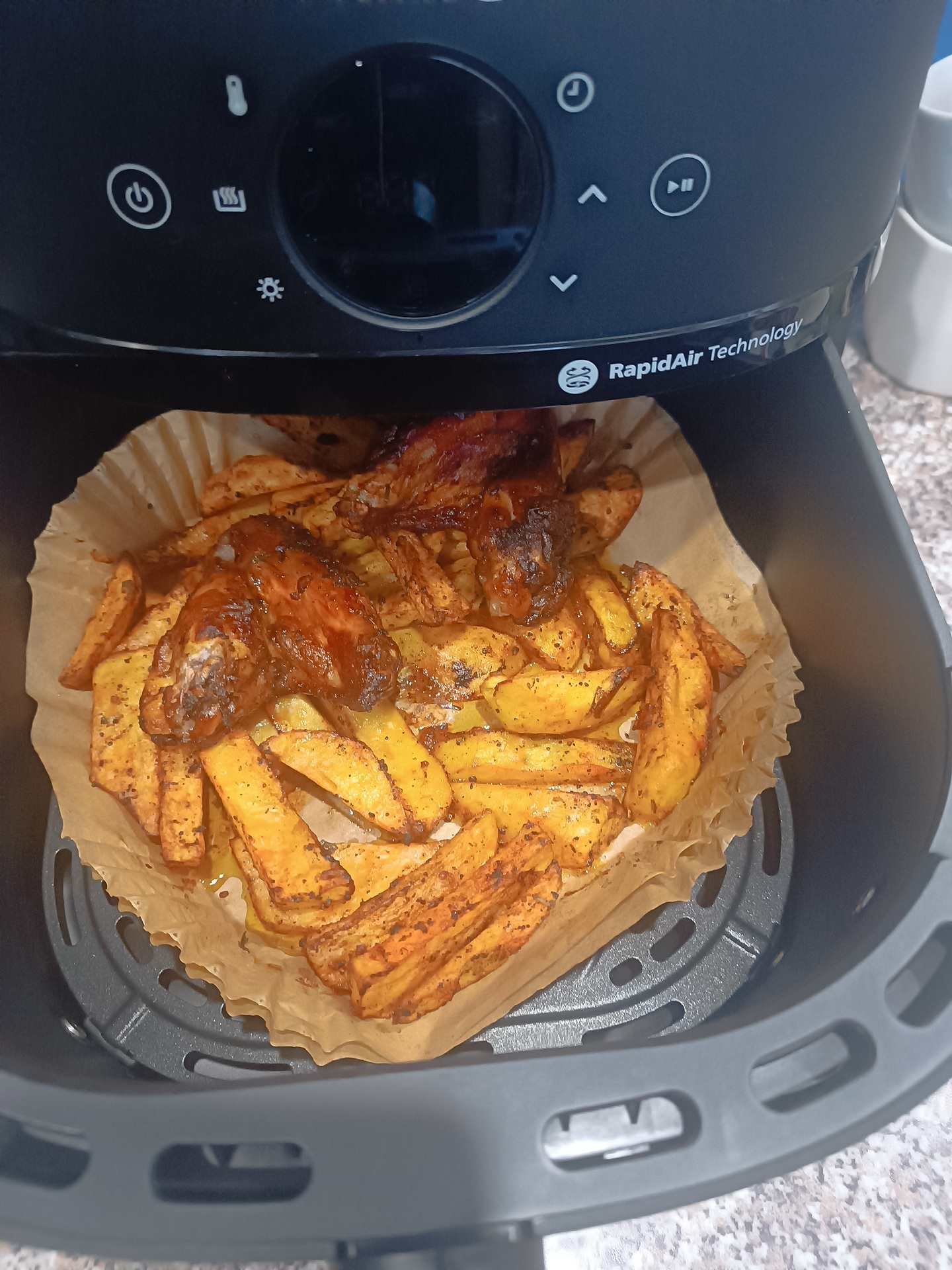 Користуюсь кілька днів, дуже зручно. Готує швидко, страви виходять рум’яні й без зайвого жиру. Легко мити, не займає багато місця на кухні.
