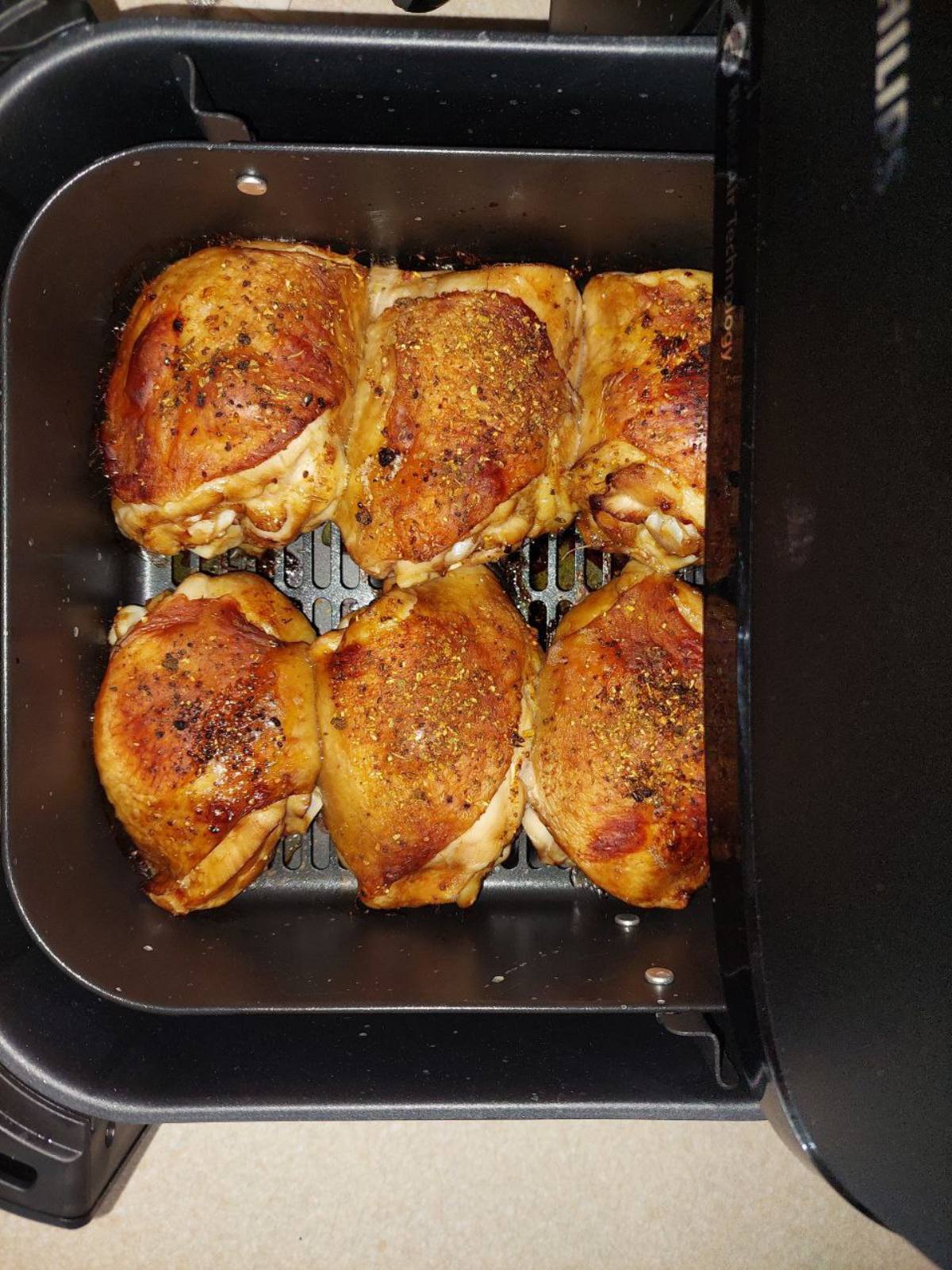 М'ясо вийшло соковитим всередині, з хрусткою скоринкою ззовні. Завдяки рівномірному прогріву, стегна готуються швидко і бездоганно, а їхній смак просто не залишає байдужим. Це ідеальний варіант для швидкого та смачного обіду!