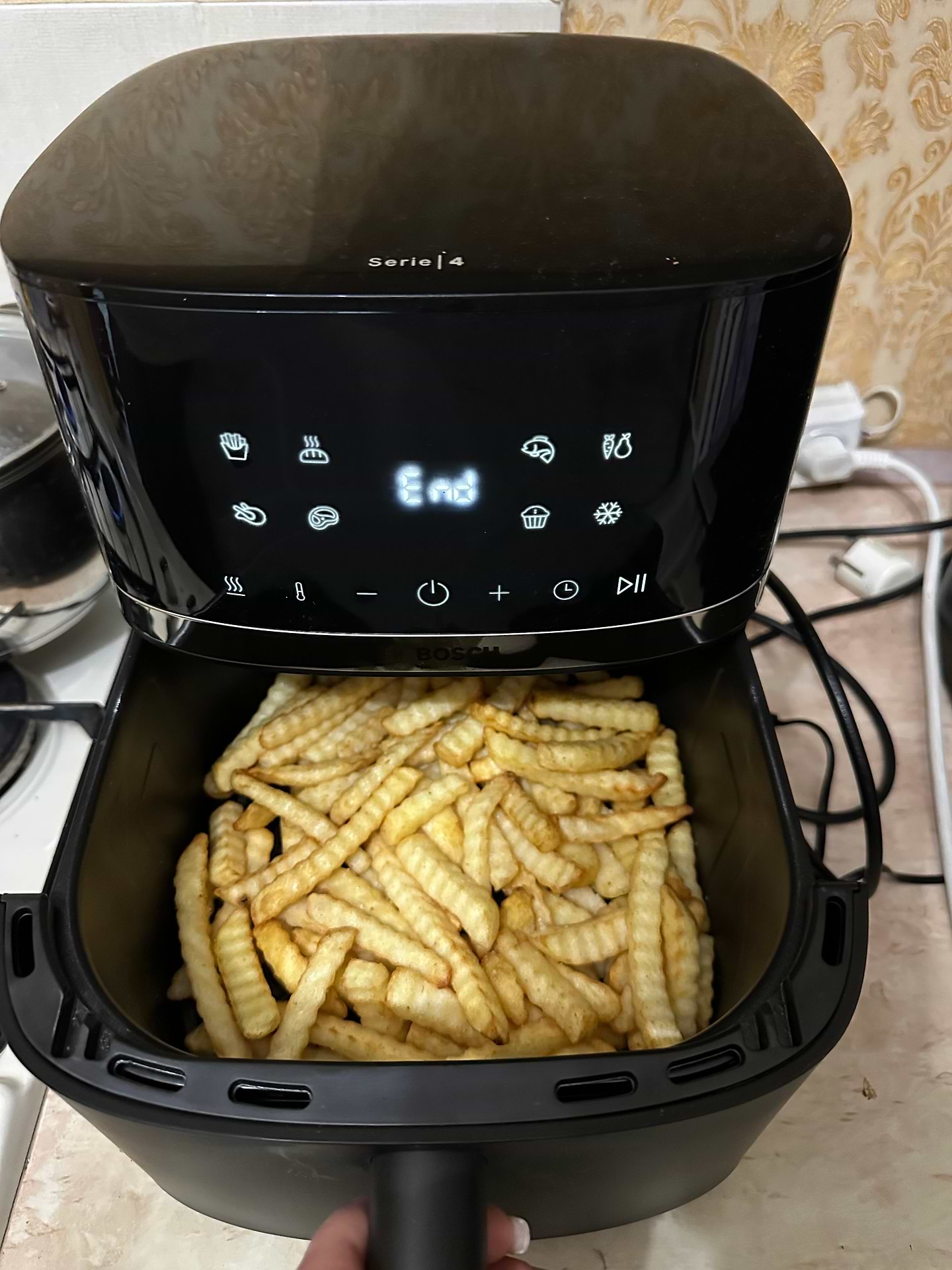 Дуже зручна в користуванні. Незамінна в побуті-старі інгрідієнти заграли новими смаками. Дизайн чудово вписався до інтерʼєру. Досить тихо працює. Обʼєму більш ніж достатньо для приготування стейків або картоплі фрі.