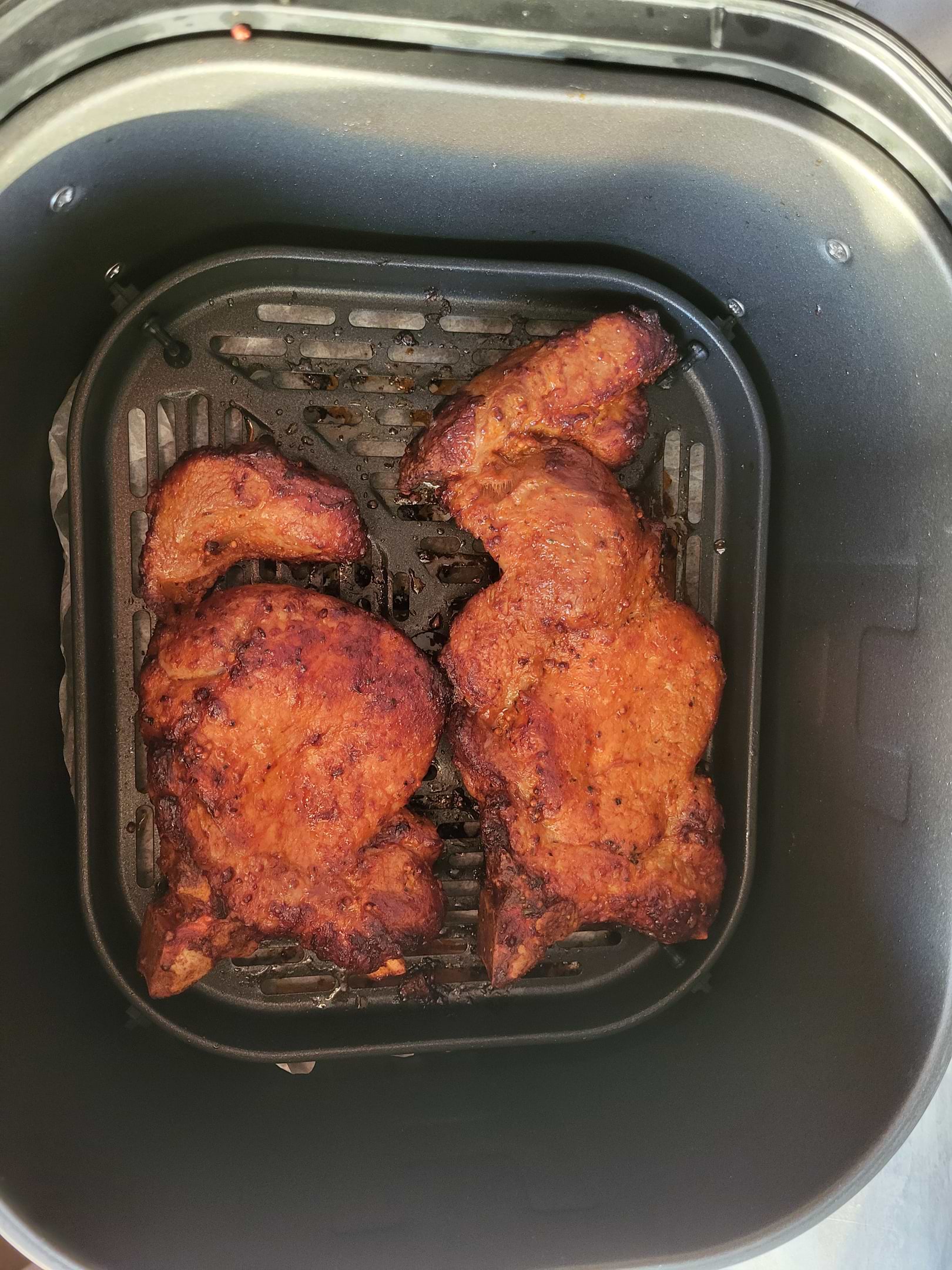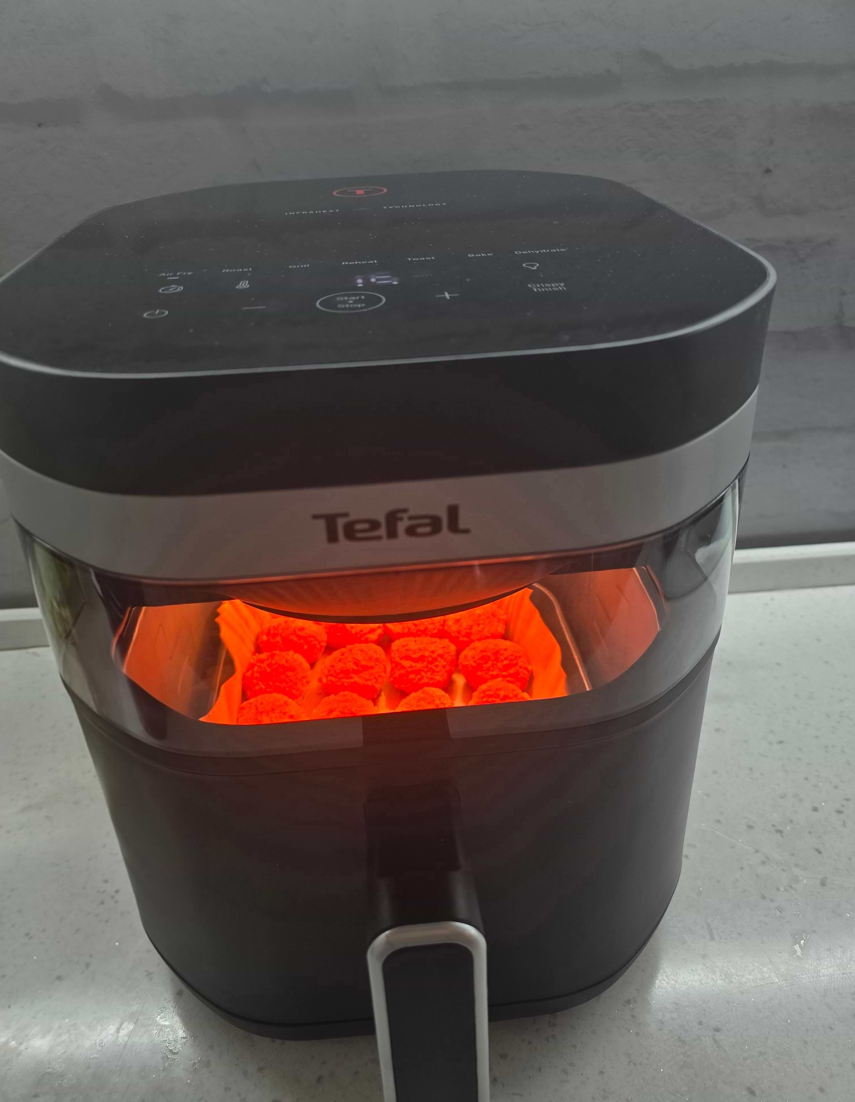 Поєднання інфрачервоного тепла вгорі та провідності в нижній частині для однорідного приготування без необхідності струшувати.**