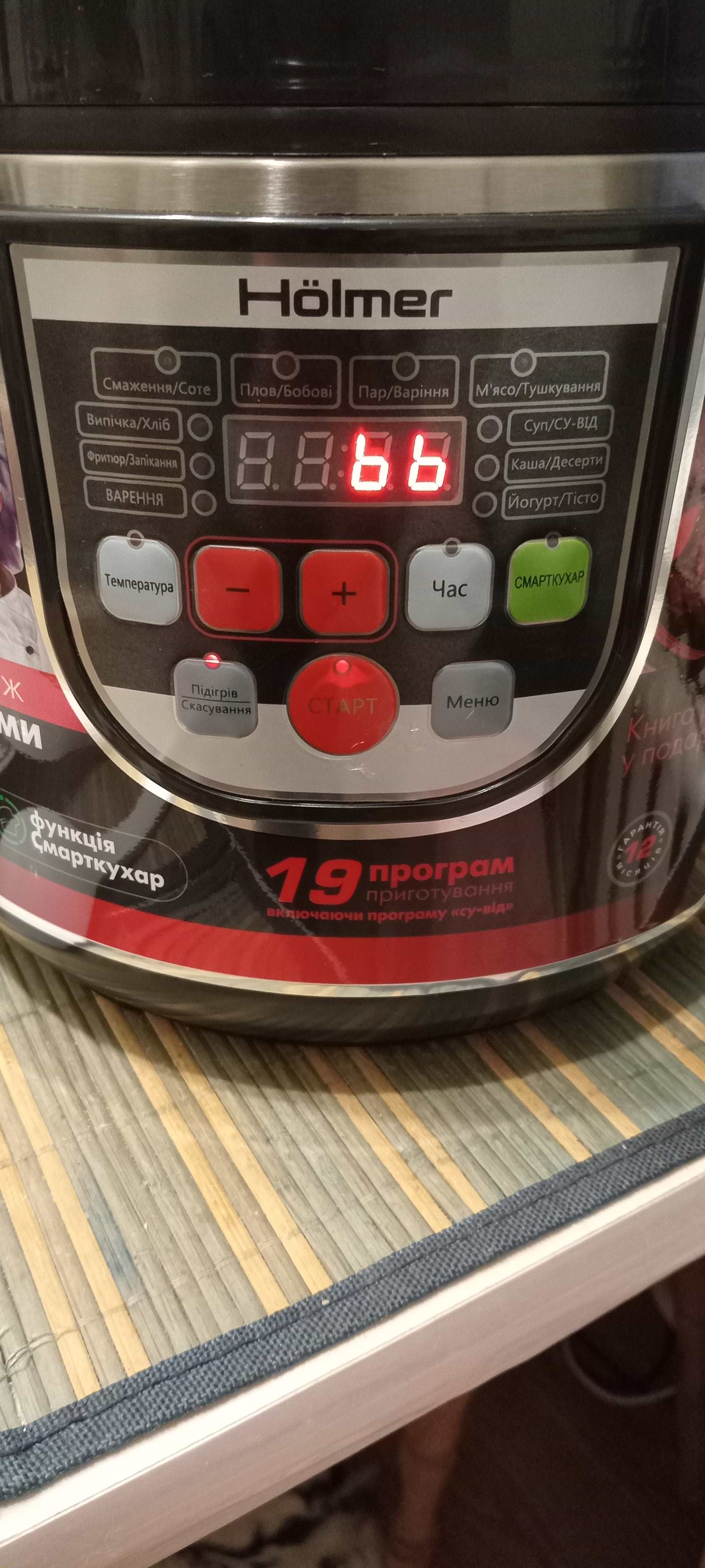 Немає звуку по закінченні програми, включається підігрів з цифрами незрозумілими 66 не 66 і вони не міняються.