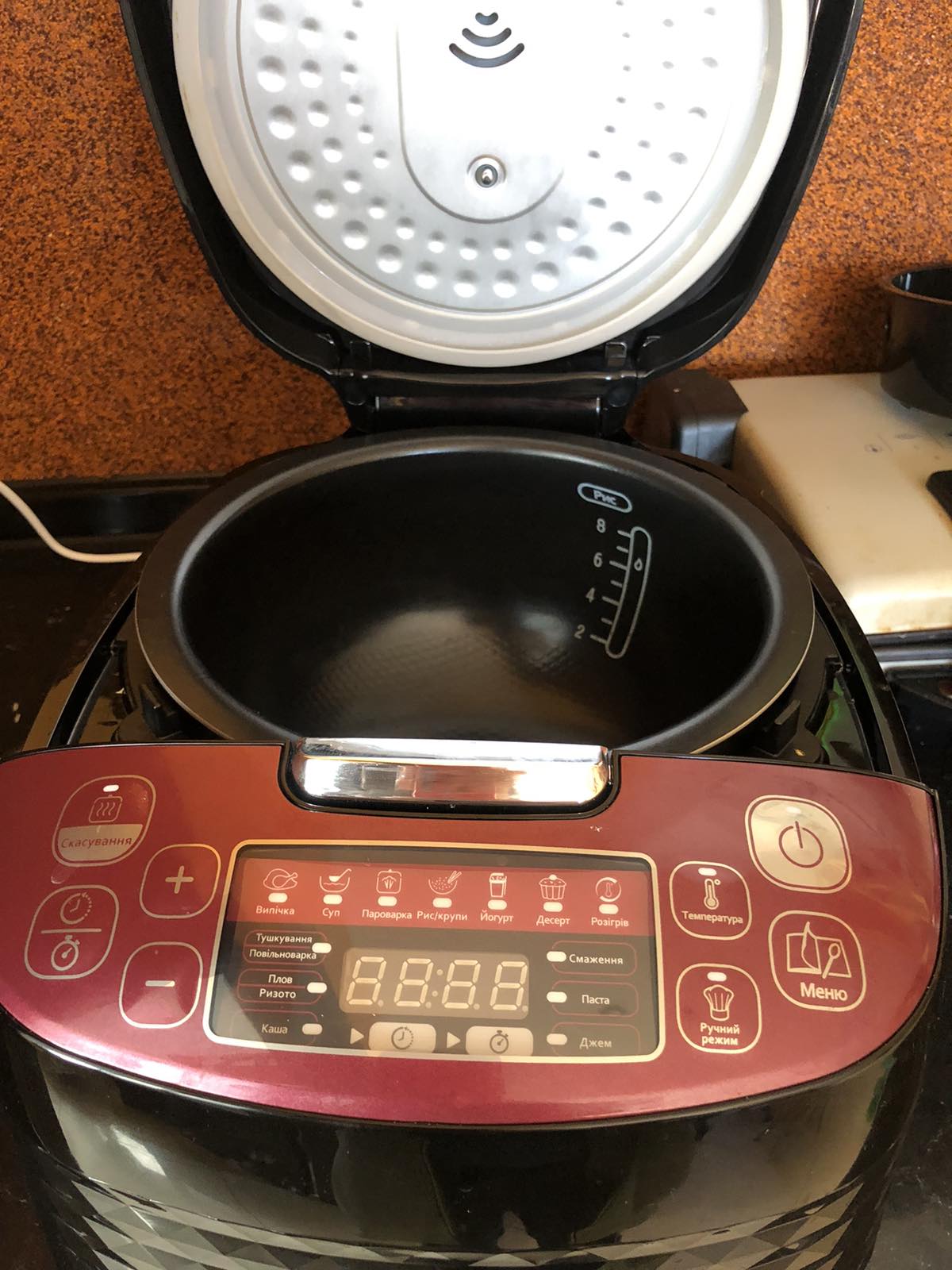Купила мультиварку минулого тижня. Дуже задоволена, готує швидко, якісно, їжа не пригорає. Єдиний мінус, нема ємності для збору конденсату, що стікає з кришки, і потрібно постійно вимочувати воду, щоб не потрапила на тен.