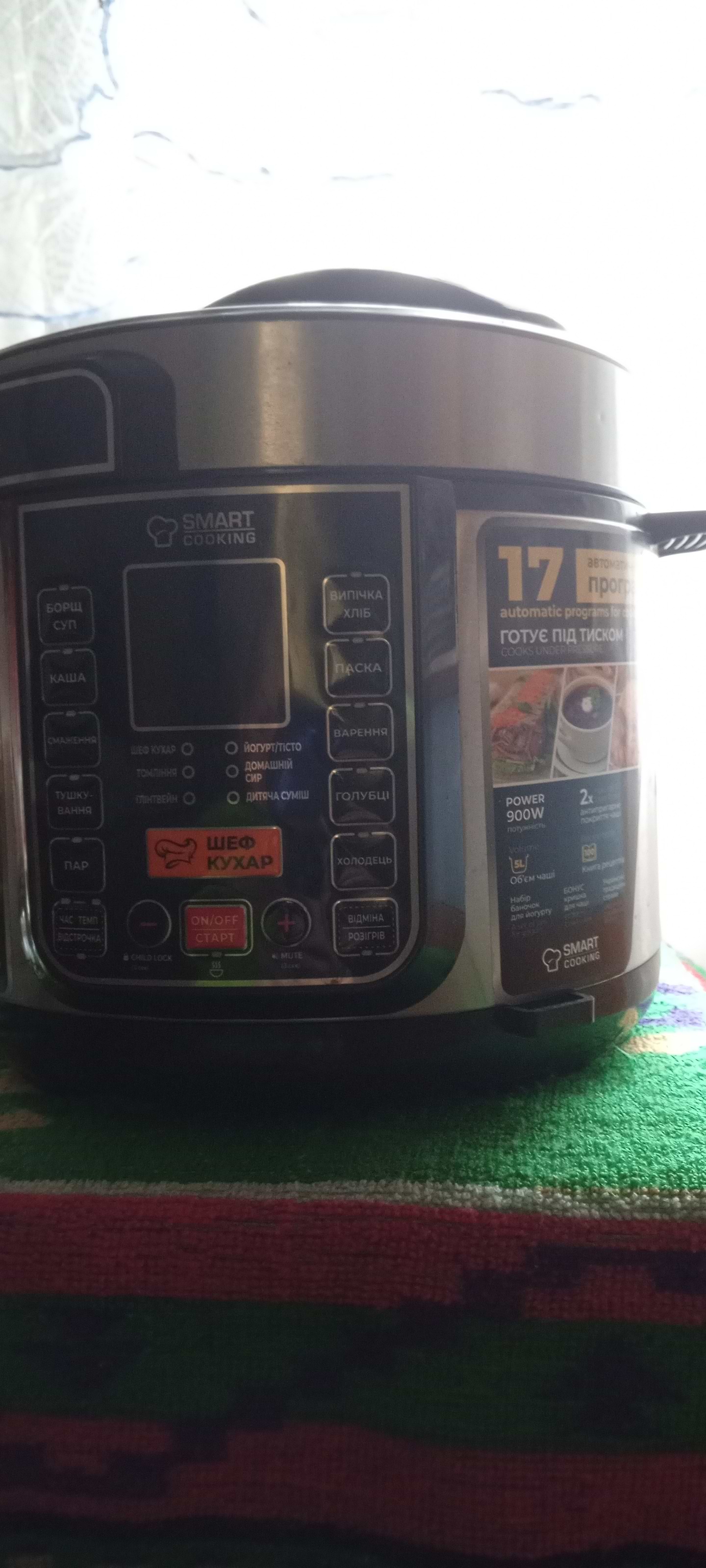 Користуюсь вже рік. Товаром задоволена. Проста у використанні. Дуже зручно, що знімається кришка, можна ретельніше вимивати. Чаша з антипригарним покриттям. У комплекті йдуть силіконові ложка і ополоник, завдяки чому покриття чаші не пошкоджується. Є набір посудин для приготування йогурту, але можна його готувати прямо в чаші. Також є сітка для приготування на пару і кришка, щоб накрити чашу з готовою стравою.