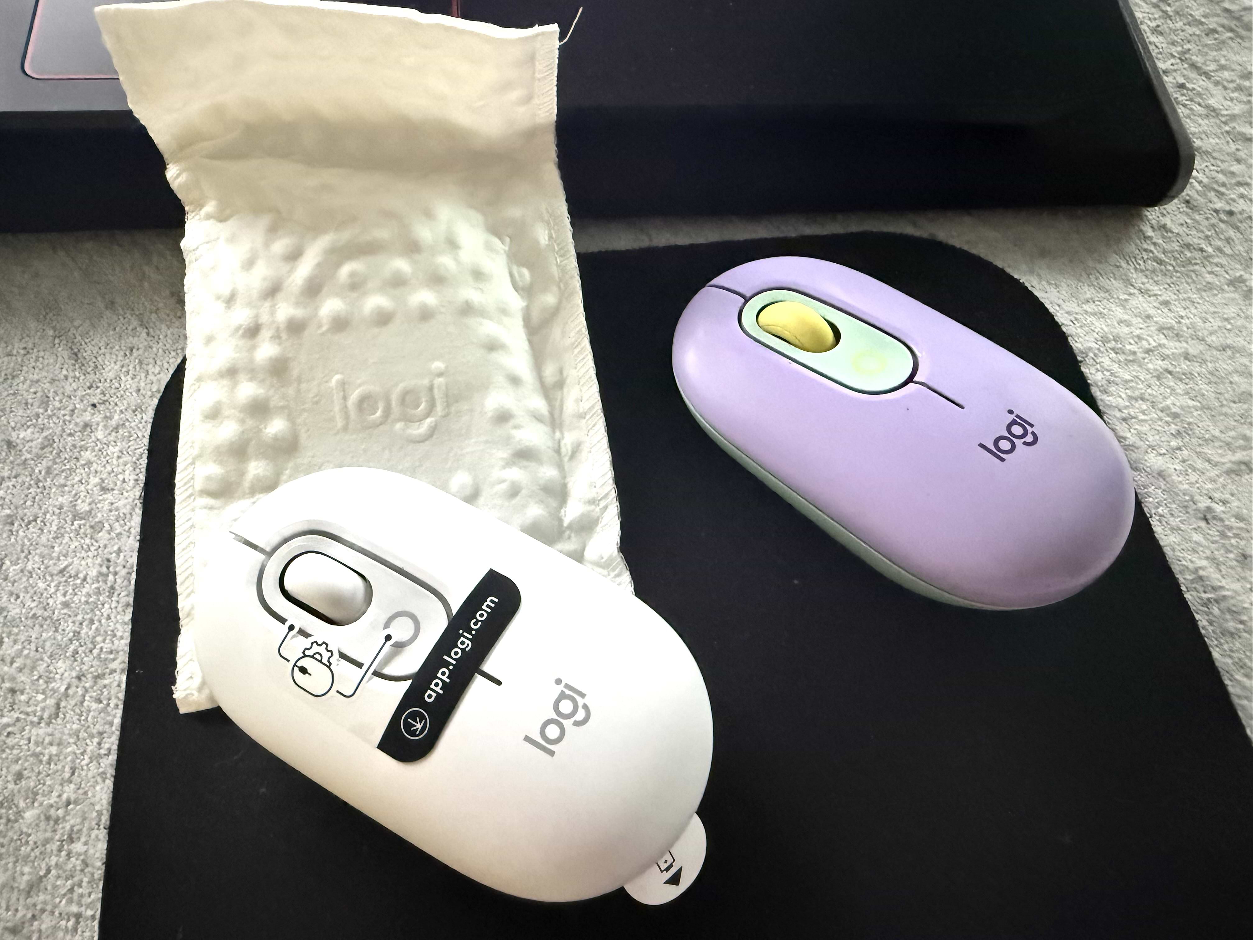 Logitech POP Mouse залежно від їх кольору, виготовлені на 37–70% з переробленого пластику.