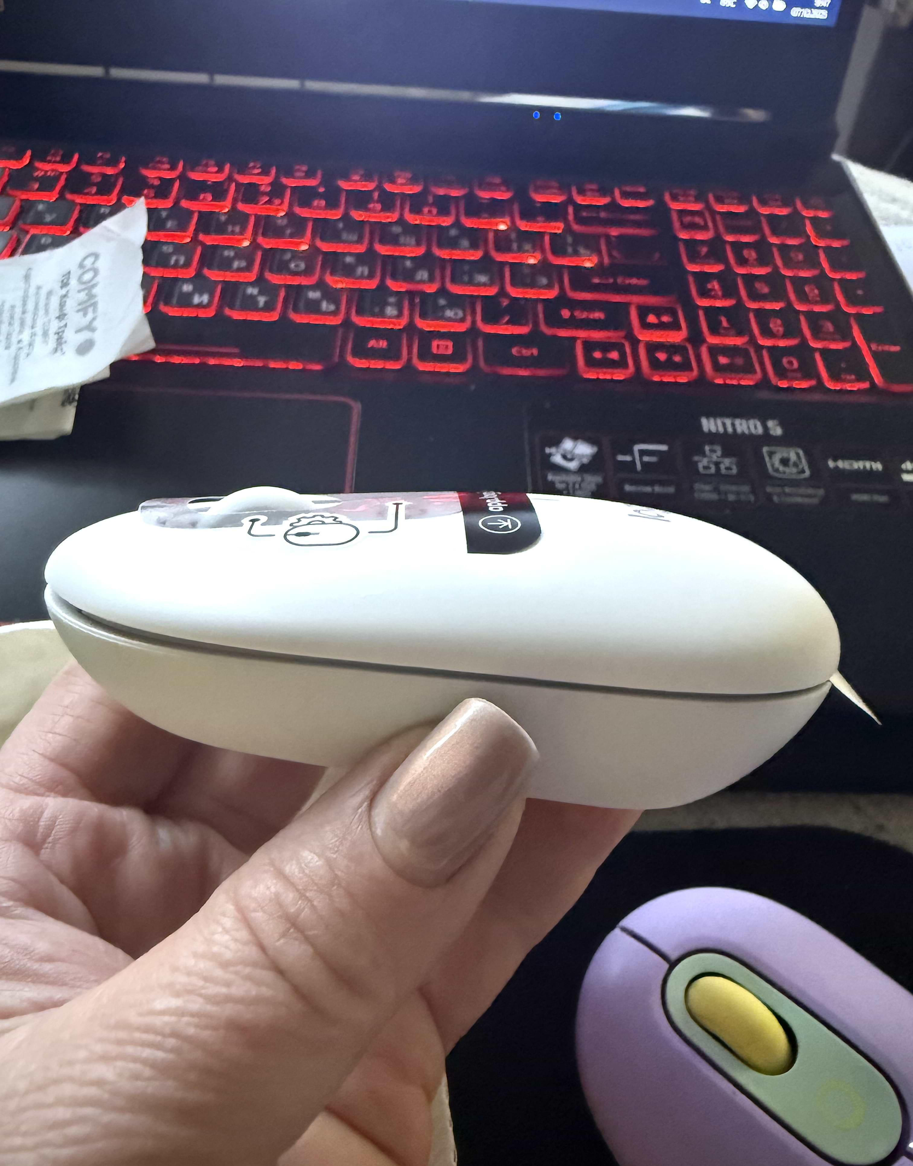 Живлення миші відбувається за допомогою двох батарей AA, які до речі вже йдуть в комплекті. Це забезпечує їй автономність та незалежність під час відключень світла, адже вона не потребує постійного живлення через кабель. Також вона має автоматичний режим сну, для довшого збереження енергії.