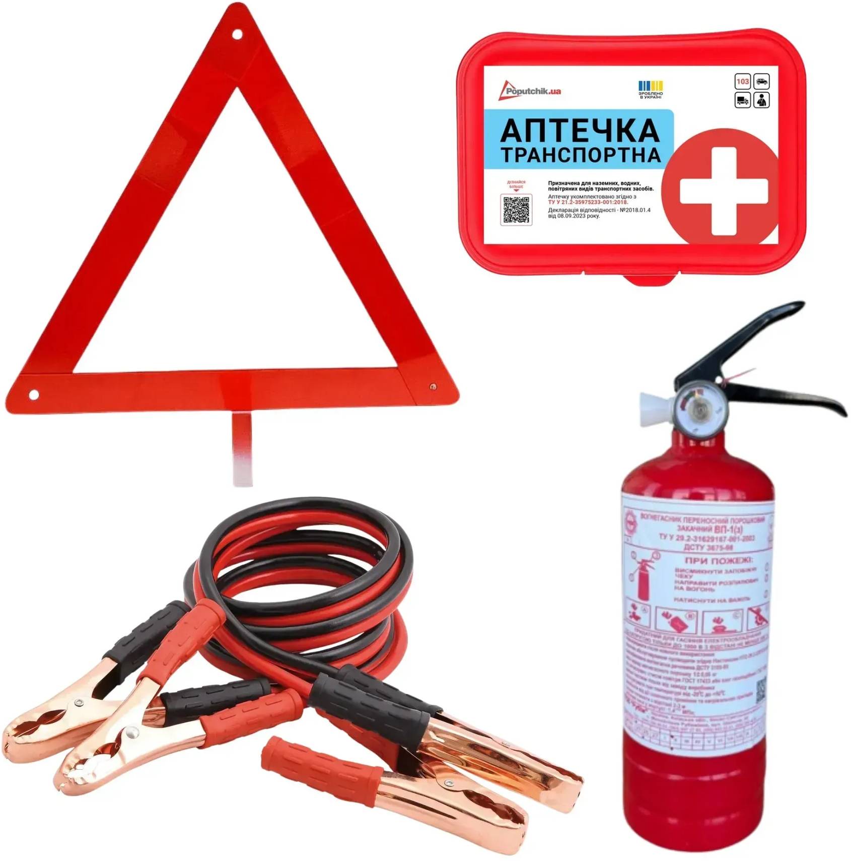 Все про Набір для авто Poputchik технічної допомоги з вогнегасником ВП-1 ВОЛЬТ (33-032-IS)