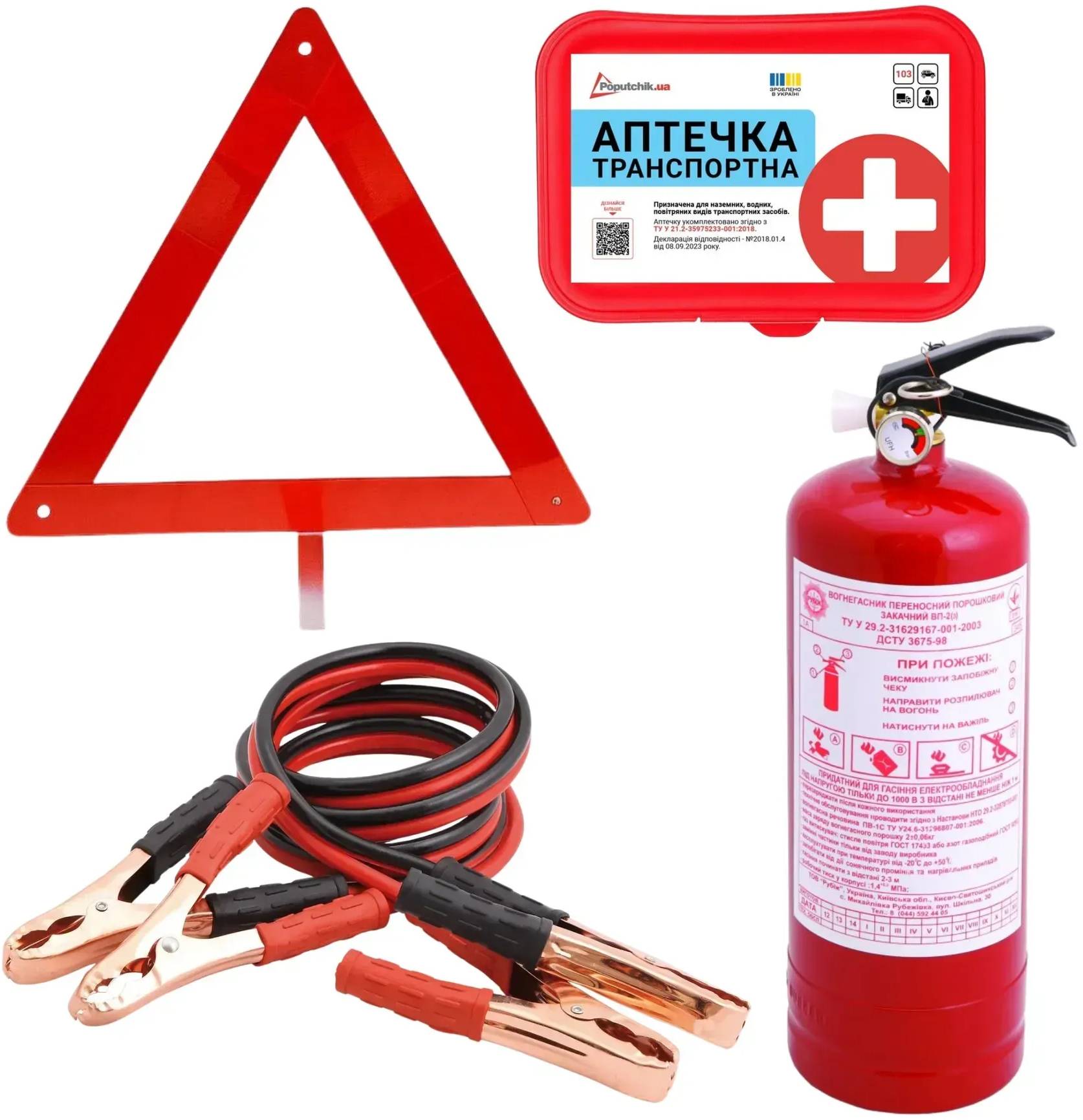 Все про Набір для авто Poputchik технічної допомоги з вогнегасником ВП-2 ВОЛЬТ (33-033-IS)