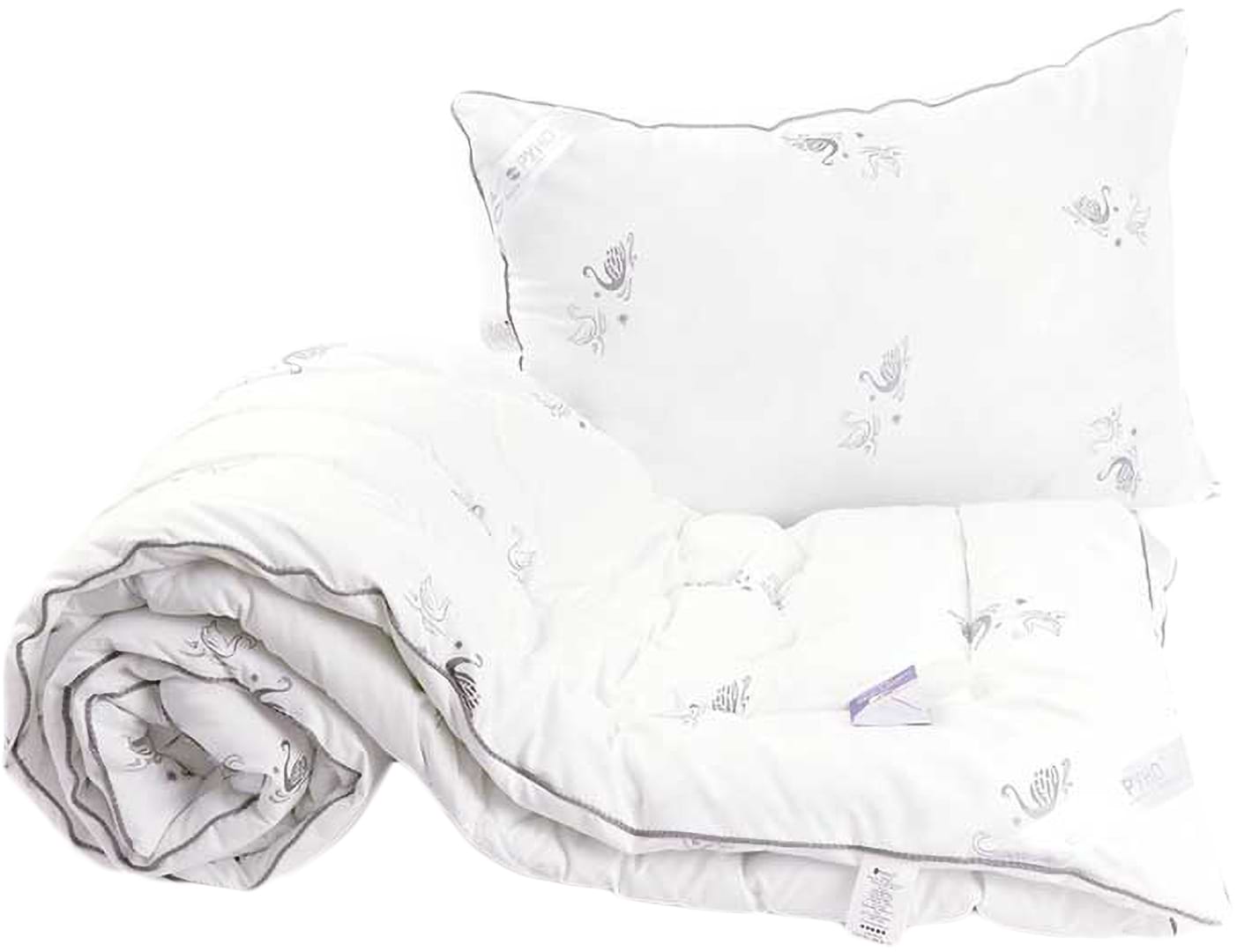 Набір ковдра полуторна + подушка Руно 140х205 + 50х70 см зі штучного лебединого пуху (924.52ЛПКУ)