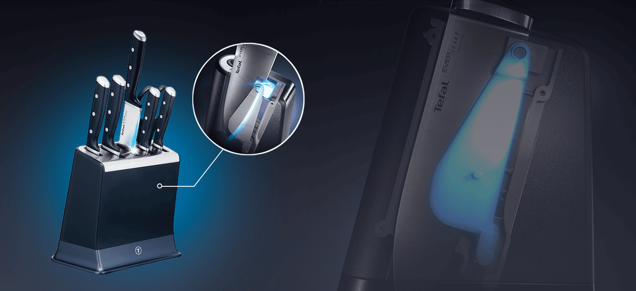 У ножів Tefal EverSharp просто немає шансів стати тупими із запатентованою технологією автоматичного загострювання, яка інтегрована у підставку.