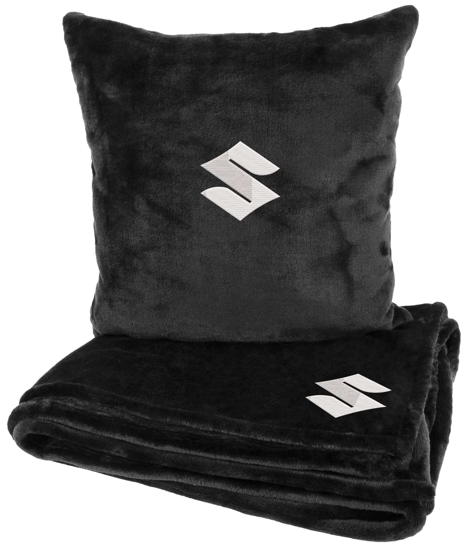 Набір плед + подушка в авто EVAtech із махри M для Suzuki чорні MBLMPSMBV111