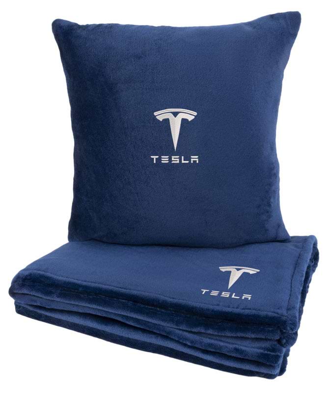 Набір плед + подушка в авто EVAtech із махри S для Tesla сині (MBLMPSSLV040)