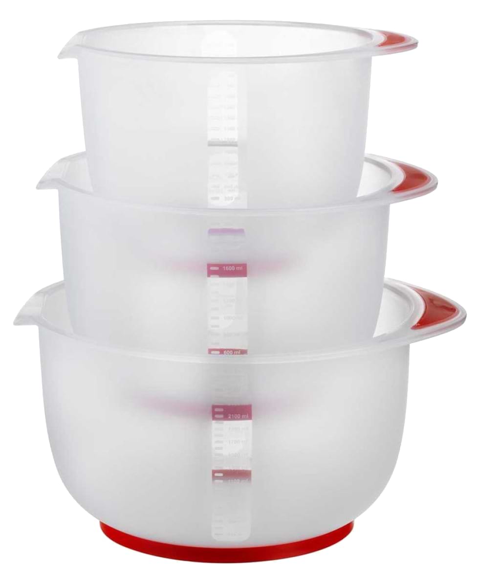 Кормстуюсь цим набором вже рік, дуже зручно, особливо дуже зручно збивати крем для тортів міксером. Посуд має мірки, що теж дуже зручно, не сковзають.