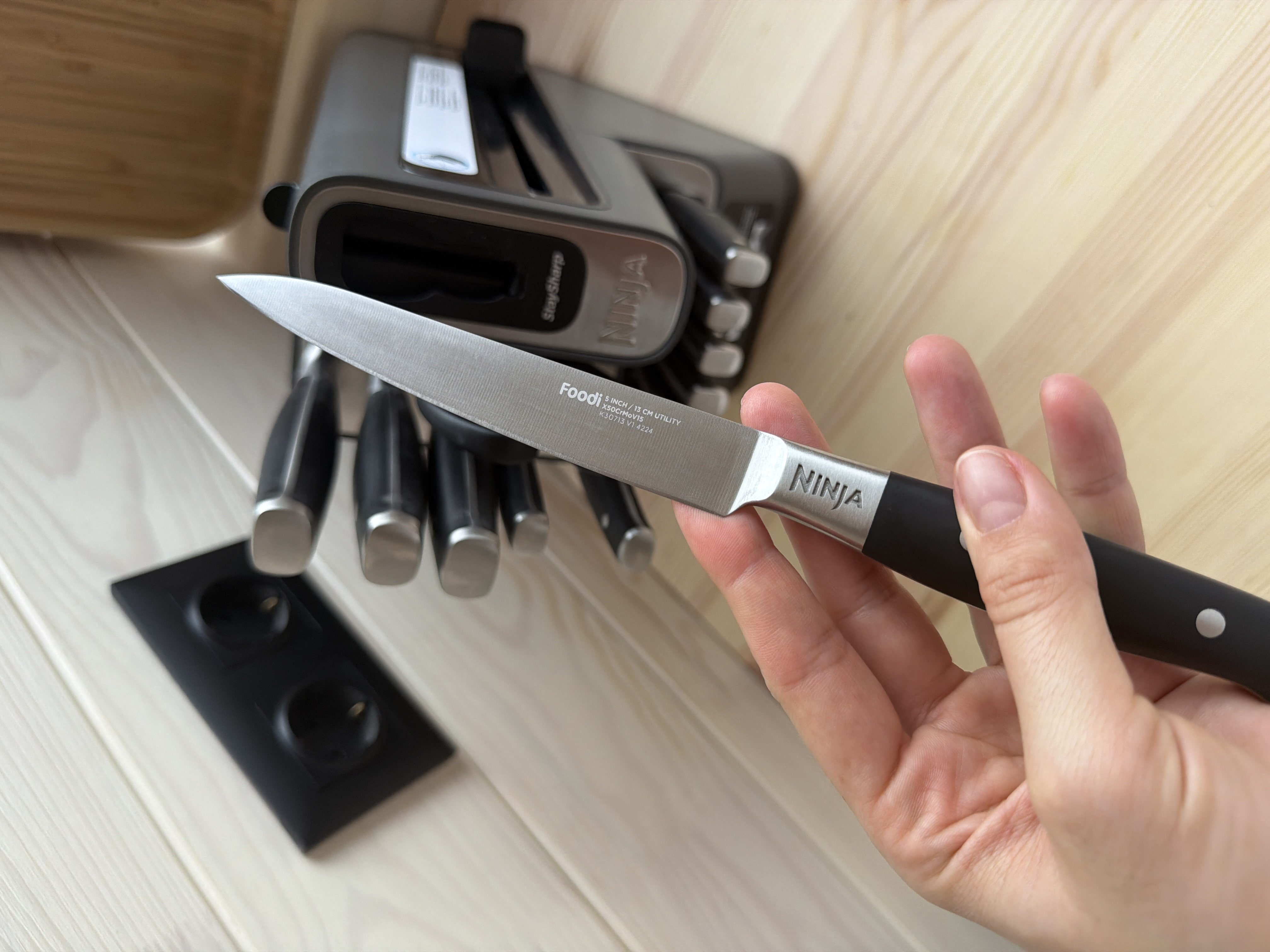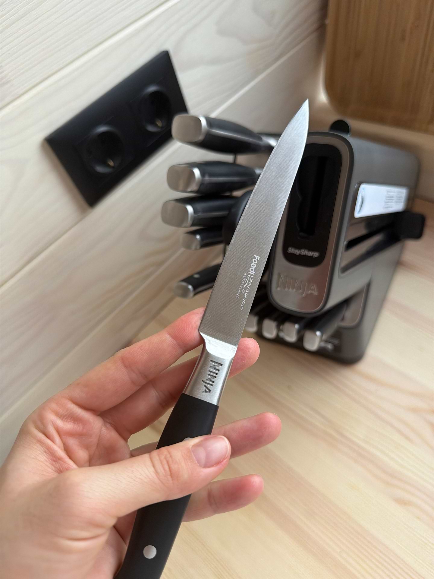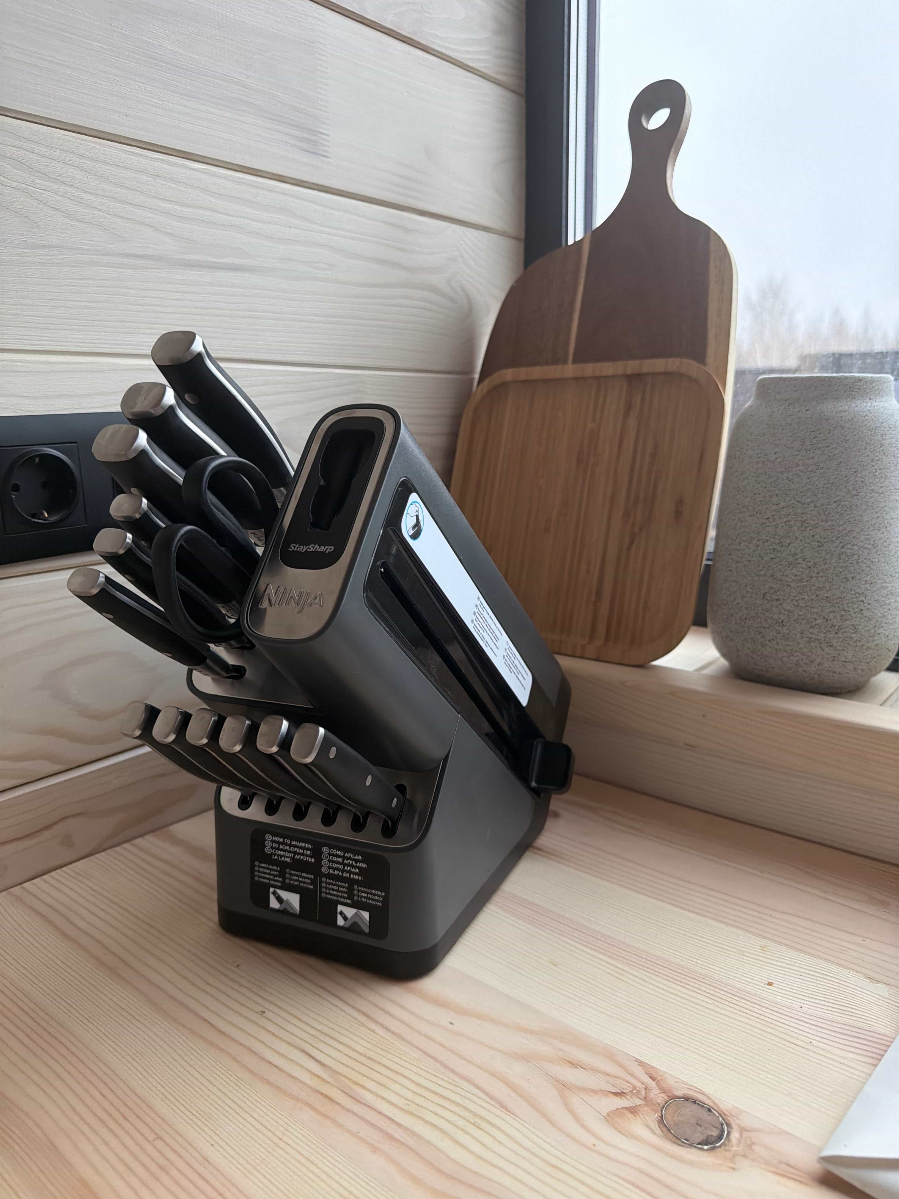 Як завжди, цей бренд на висоті. Дуже задоволена якістю та дизайном, так може ціна кусається, але в наборі є 6 робочих ножів та 6 для стейка (серверування на стіл) + ножиці.А саме головне це вбудоване точило для ножів.