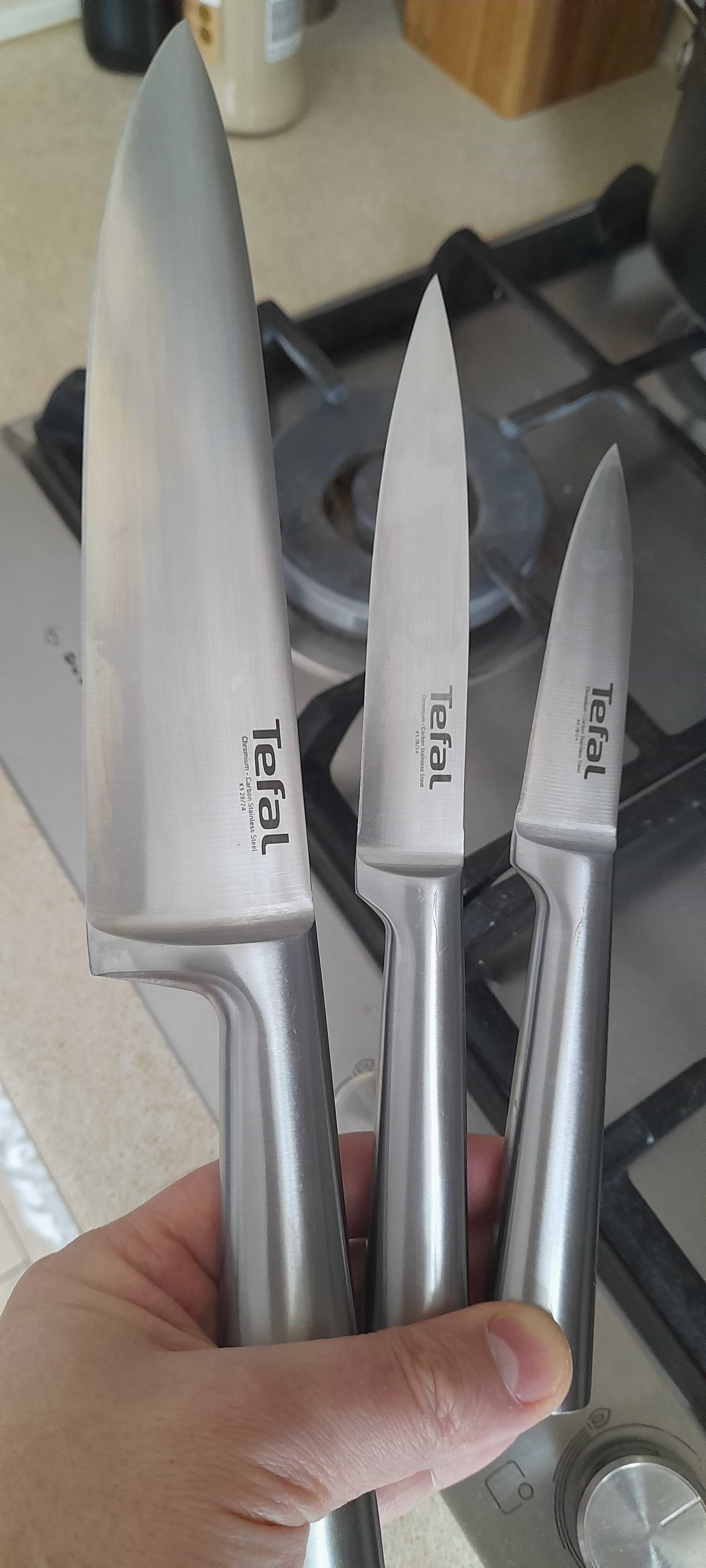 Ножі офігенні. Брала собі, а потім ще і на подарунок) дуже гострі, лезо якісне. Працювати з ними одне задоволення! Є три розміри. Маленький самий улюблений