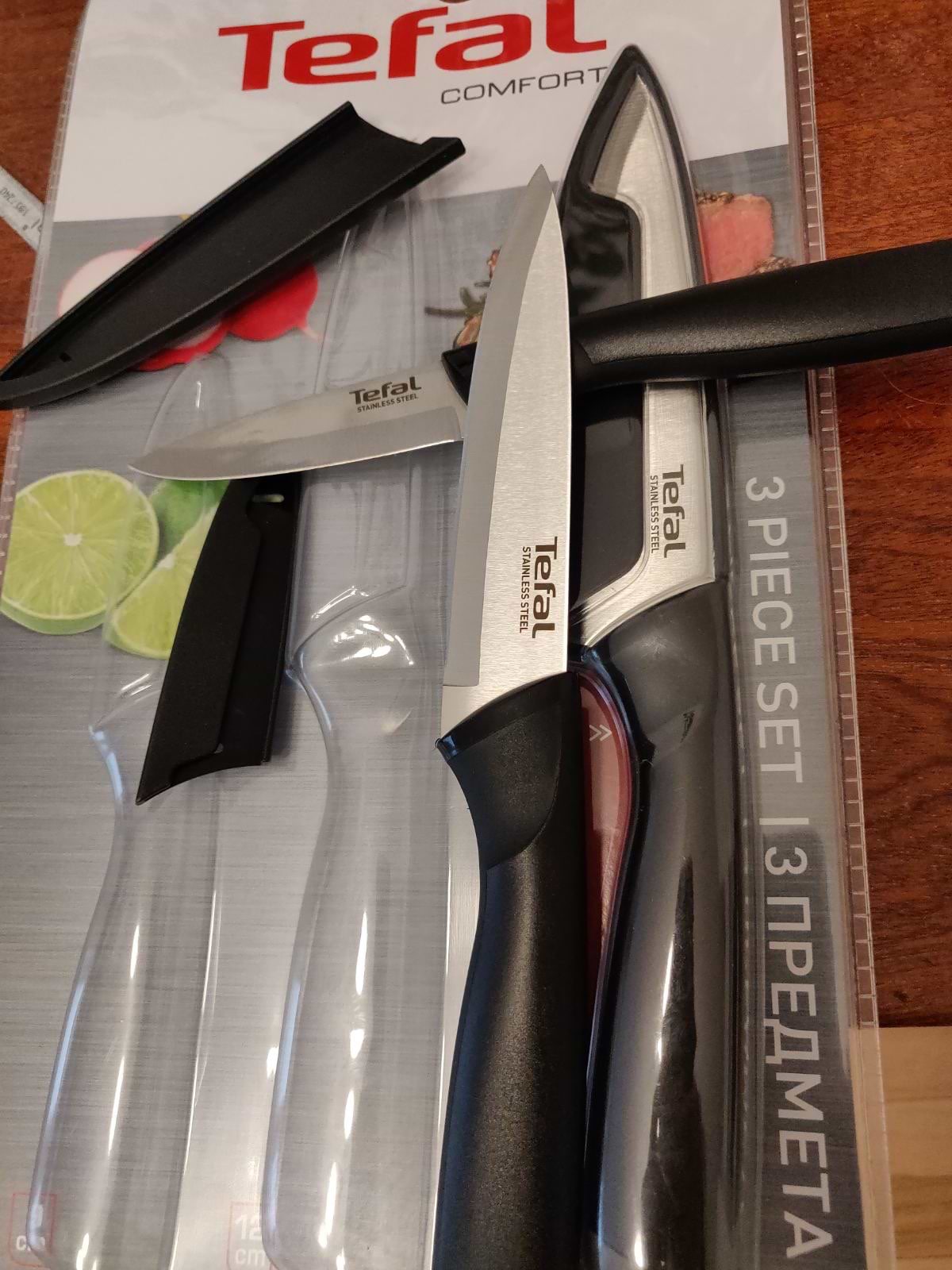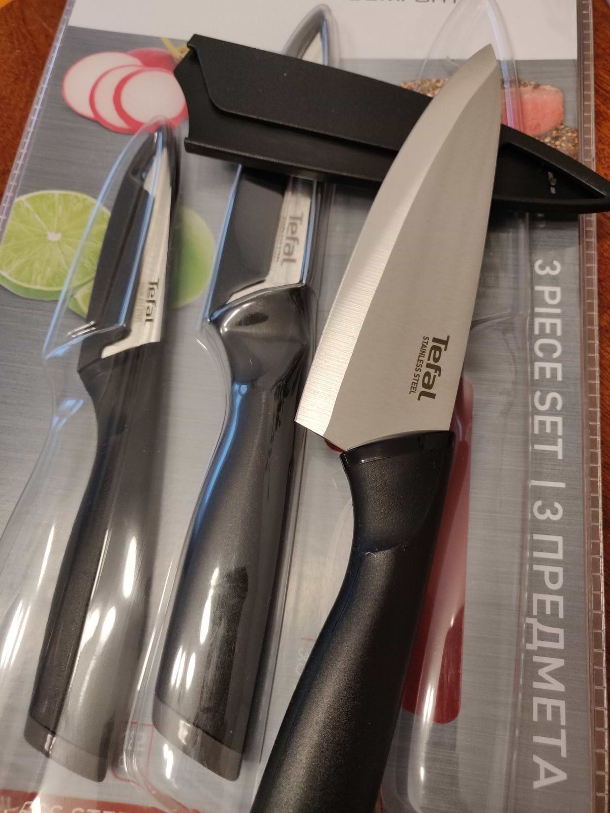 Приобрели ножи Tefal и ни разу не пожалели, они превосходны, идеально режут и лежат в руке, настоятельно рекомендую!!!