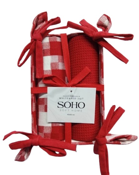 Набір рушників SOHO 40х60 см White&Red 2 шт. (BS 88005B)