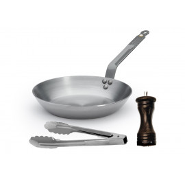 Один из топовых французских брендов de Buyer. Давно мечтала купить себе сковороду и посуду от этого производителя, и вот мечта сбылась. Готовить мясо и стейки одно удовольствие, ничего не пригорает. Мясо получается сочное и вкусное. Сковорода весьма легкая, поэтому управляться ею просто. Подходит для всех типов поверхностей. В комплекте также была мельница и щипцы, которые также сделаны на совесть) .