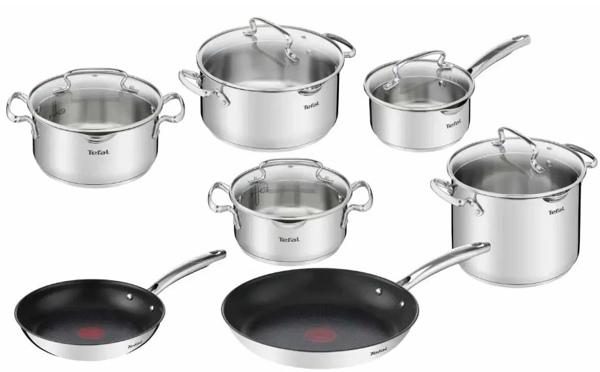 Це з тієї серії, що раз купив і назавжди. Має повну необхідну комплектацію, всіма потрібними літражами каструль і дві сковороди різним діаметром. Матеріал посуду, це якісна нержавіюча сталь, а сковороди в середині ще й мають антипригарне покриття. При користуванні отримую тільки задоволення, так, що задоволена, що обрала саме цей бренд і саме таку комплектацію.