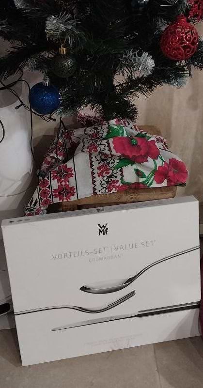 Нещодавно купили набір WMF Verona на 30 предметів, і він просто чудовий! Прибори виглядають дуже елегантно, блискучі, стильні — одразу видно, що це якісний німецький виробник. Добре лежать у руці, приємна вага, не надто легкі й не важкі. Метал не темніє після миття в посудомийці, що дуже радує. Підходять як для щоденного використання, так і для святкового столу. Дизайн класичний, підходить під будь-який сервіз. Надійна покупка на довгі роки.