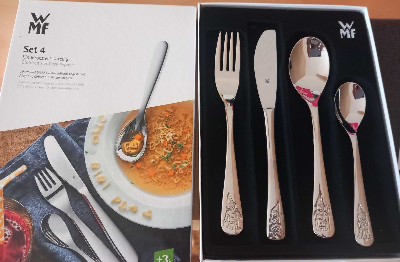 Набори посуду WMF розроблені відповідно до моторних навичок дітей у віці від трьох років, для того щоб вчитися правильно їсти і одночасно з цим розповідати захопливі історії.