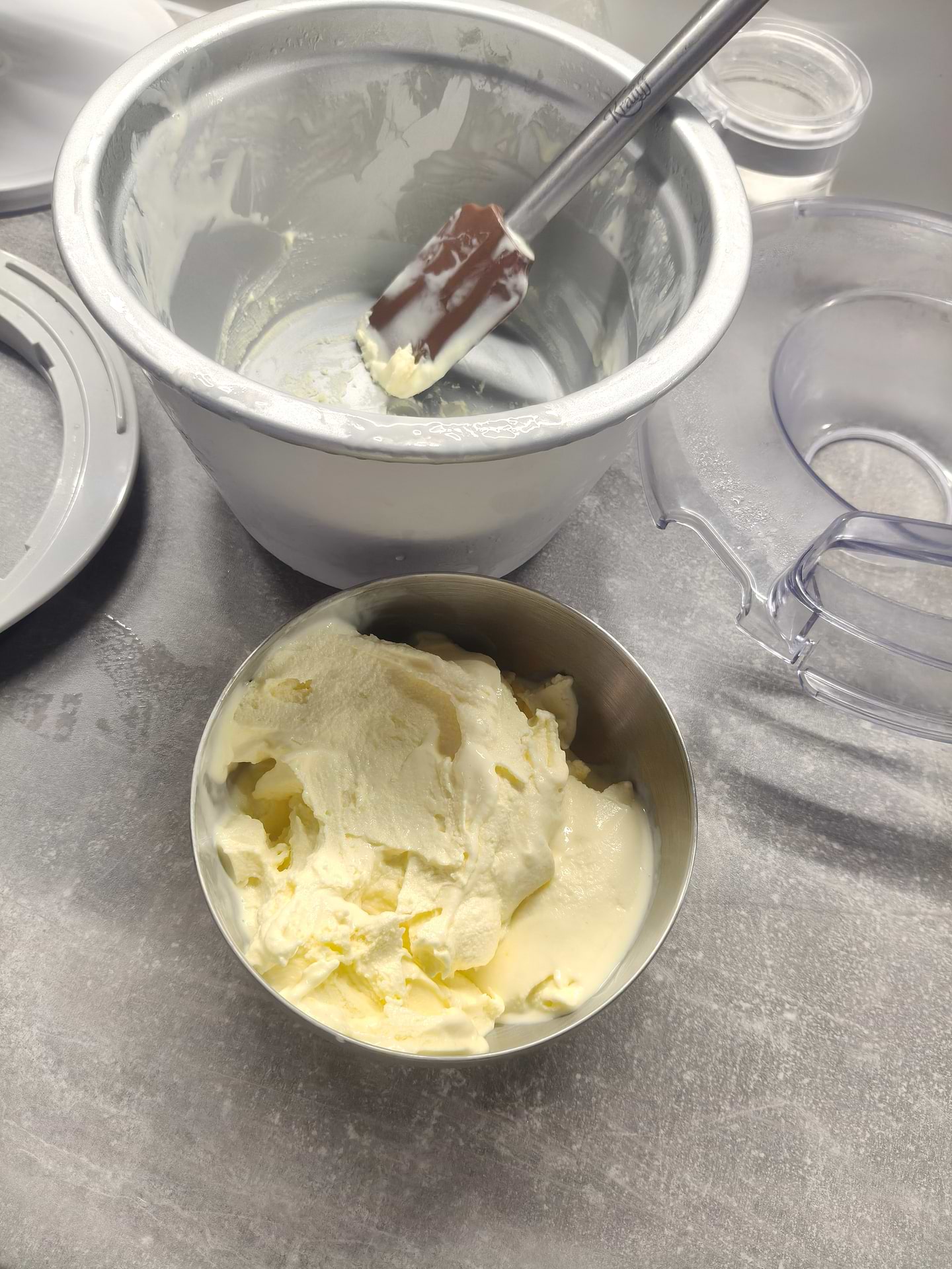 чудова насадка га Kenwood. після використання тиждень зрозуміли, що чаша постійна має бути в морозильній камері, щоб бути холодною. морозиво вийшло з першого разу
