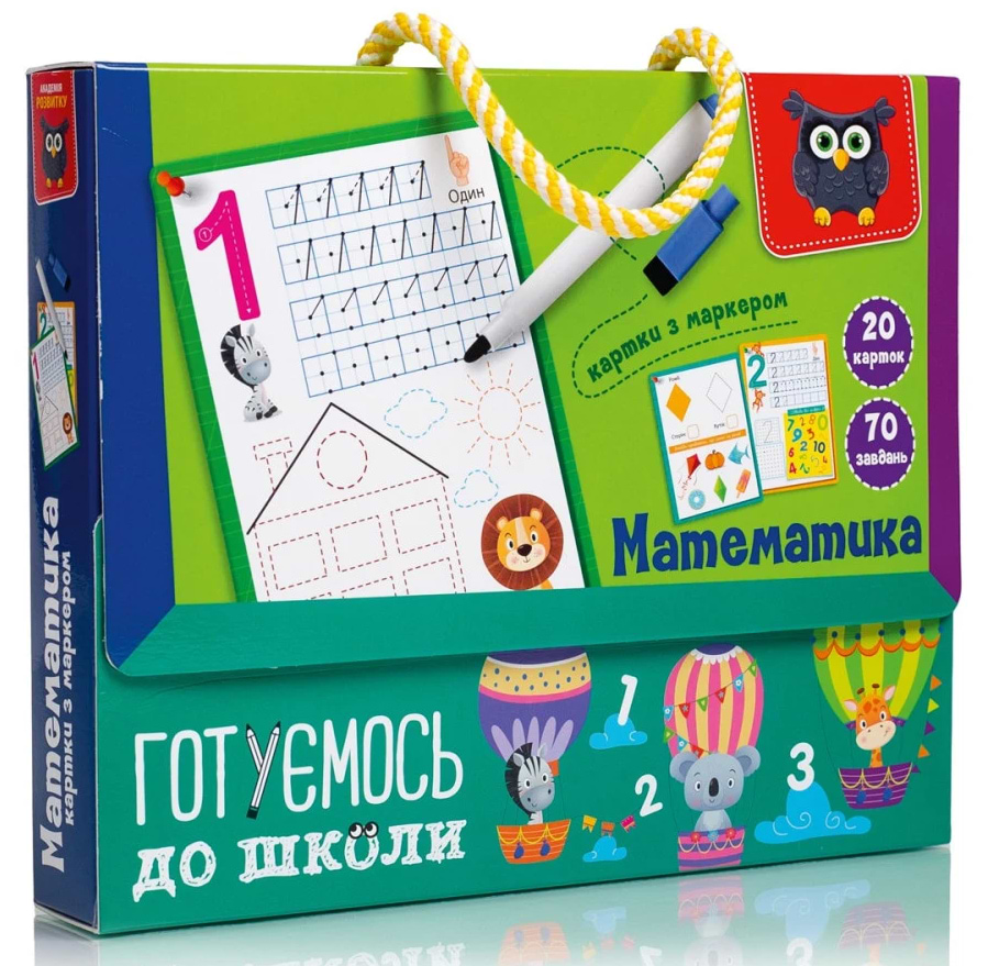 Особливості: Завдяки багаторазовому маркеру можна знов і знов повертатись до написання цифр або виконання улюблених завдань, щоб закріпити пройдений матеріал.