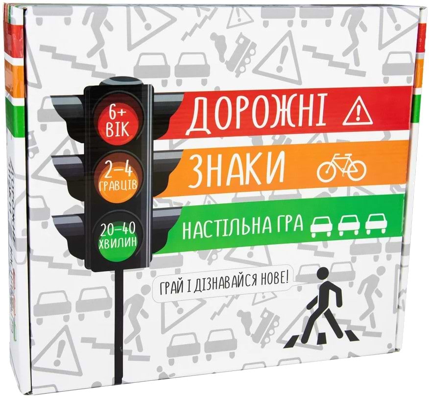 «Дорожні знаки» – гра для дітей від 6 років, що передбачає вивчення основних дорожніх знаків, з якими пішохід може стикнутися в житті. Наприклад: «Пішохідний перехід», «Доріжка для велосипедистів», «Зупинка автобуса» і т.д. В комплекті «Дорожні знаки»Strateg (30245) є велике поле, по якому гравцям потрібно переміщати свої фішки, і кубик, а ціль гри – дійти до фінішу, дотримуючись правил дорожнього руху.