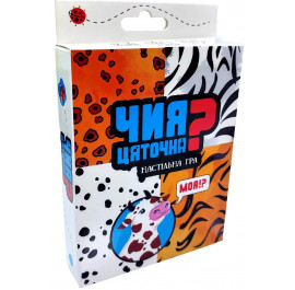 «Чия цяточка?» – сімейна гра з яскравими малюнками на картках. Правила дуже прості, адже гра створена для дітей від 4 років. Гравці отримують в руки по 6 карток з тваринами, а картки з візерунками добре перемішують і кладуть колодою посеред столу. Тепер гравці по черзі відкривають з цієї колоди картки і порівнюють їх з картками в руках. Той, хто першим викладе з рук правильно підібрану картку з твариною, заробляє бал. І в кінці гри гравець з найбільшою кількістю балів перемагає. Ця гра на уважність буде цікавою і дітям, і їхнім батькам. Веселий ігровий процес допоможе проводити час весело, при цьому тренуючи швидкість реакції, спостережливість та пам'ять.