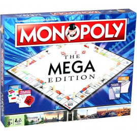Купуй більше нерухомості, купуй більше будівель та керуй великими грошима у цьому Мега-виданні улюбленої сімейної гри "Монополія". На величезному ігровому полі є 12 додаткових місць, включаючи вісім нових вулиць, по одній для кожної групи кольорів. На вулицях можна збудувати хмарочоси, щоб орендна плата злетіла до небес, а якщо ти збудуєш депо на залізничних станціях, то отримаєш подвійну орендну плату! Додаткова купюра M1000 допоможе тобі заплатити за все це, і ти зможеш мчати великою дошкою за допомогою кубика швидкості та автобусних квитків. У "Монополію: Мега-видання" легко і швидко грати, і вона пропонує нові можливості та підвищений ризик.