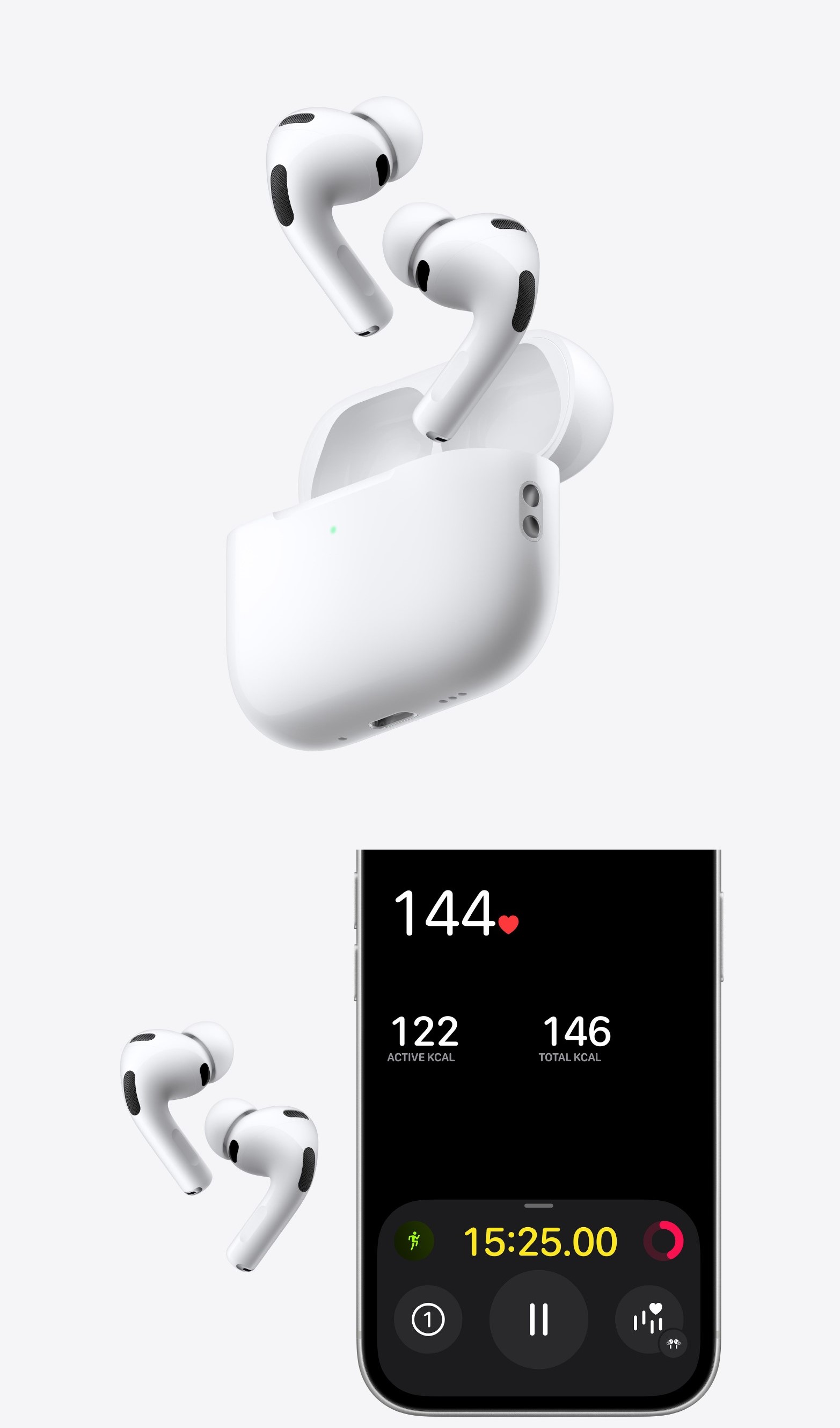AirPost Pro 3. До 2 разів ефективніше активне поглинання шуму, ніж в AirPods Pro 21. Тепер із відстеженням серцевого ритму2, довшим часом роботи від акумулятора3 та передовими рішеннями для здоров'я слуху. Новий дизайн для надійнішої фіксації у вухах.