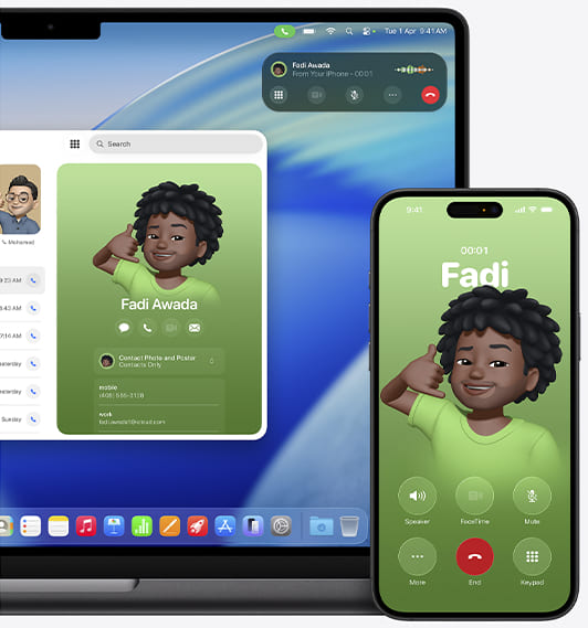 Mac має магічний зв’язок з іншими пристроями Apple. Переглядайте вміст на екрані iPhone та керуйте ним із комп’ютера Mac за допомогою функції «Дублювання iPhone».³ Копіюйте контент на iPhone і вставляйте його на Mac. Спілкуйтесь у Повідомленнях або телефонуйте чи відповідайте на виклики FaceTime на Mac.⁴