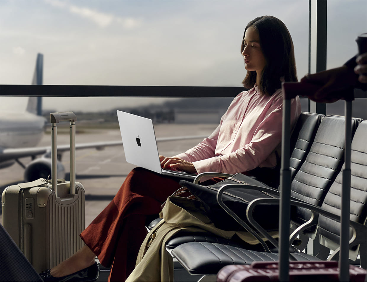 MacBook Pro 14 дюймів забезпечує виняткову продуктивність незалежно від того, працює він від акумулятора чи його підʼєднано до мережі.¹