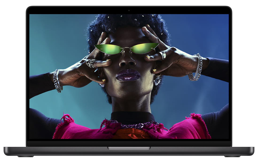 Дисплей Liquid Retina XDR 14,2 дюйма⁵ має максимальну яскравість 1600 кд/м²,6 до 1000 кд/м² постійної яскравості й контрастність 1 000 000:1. Також доступний варіант дисплея із нанотекстурним покриттям для мінімізації відблисків.