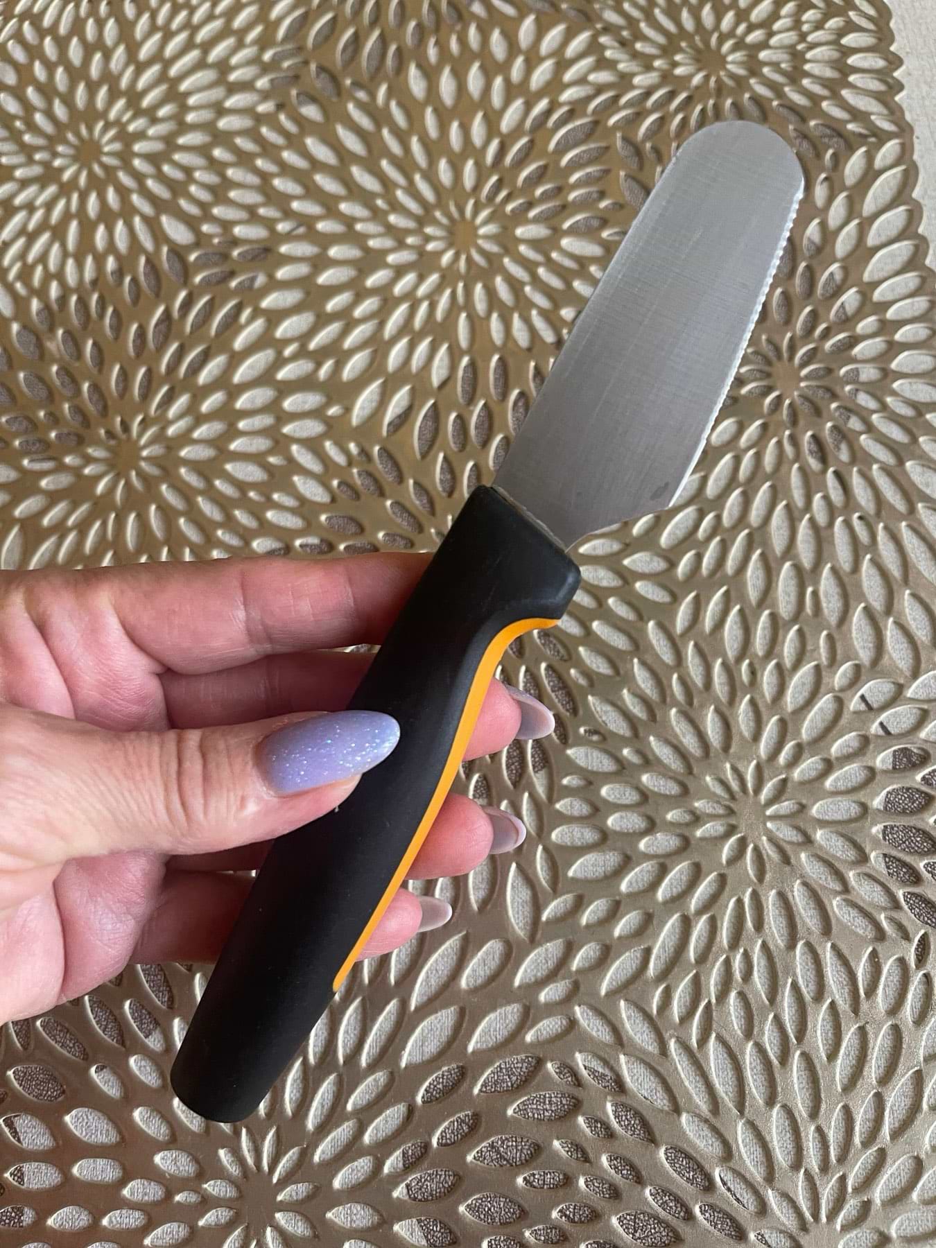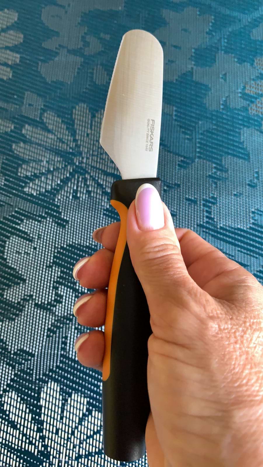 В мене вже є набір ножів для різних продуктів, коли побачила ніж для масла, зрозуміло, що його немає в моїй колекції, тому вирішила це виправити та придбати. Їм так зручно мастити масло на хліб, бо ніж маленький та акуратний. Довжина леза усього 8 см, рукоятка пластикова, не ковзка. Дуже зручний ніж у використанні та з його допомогою можна економити масло. Покупкою задоволена дуже.