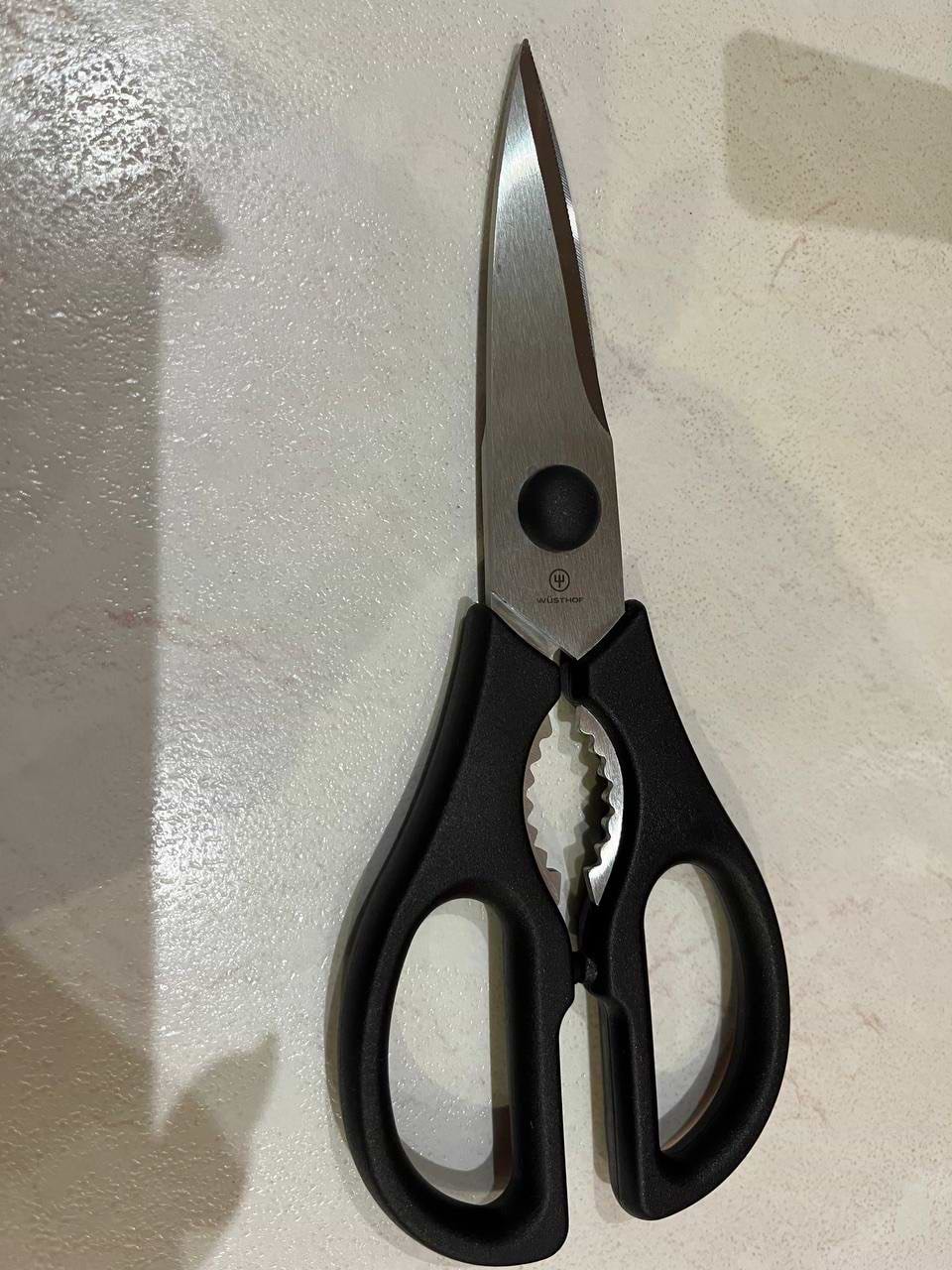 За зображенням може здатися, що це прості ножиці, але насправді це супер якісний кухонний аксесуар від відомого виробника. Виконані з якісної сталі, пластикові ручки, але дуже зручні, не ковзають й на всі 100 справляються зі своєю задачею. Навіть після кількох місяців користування ножиці залишаються такі ж гострі.