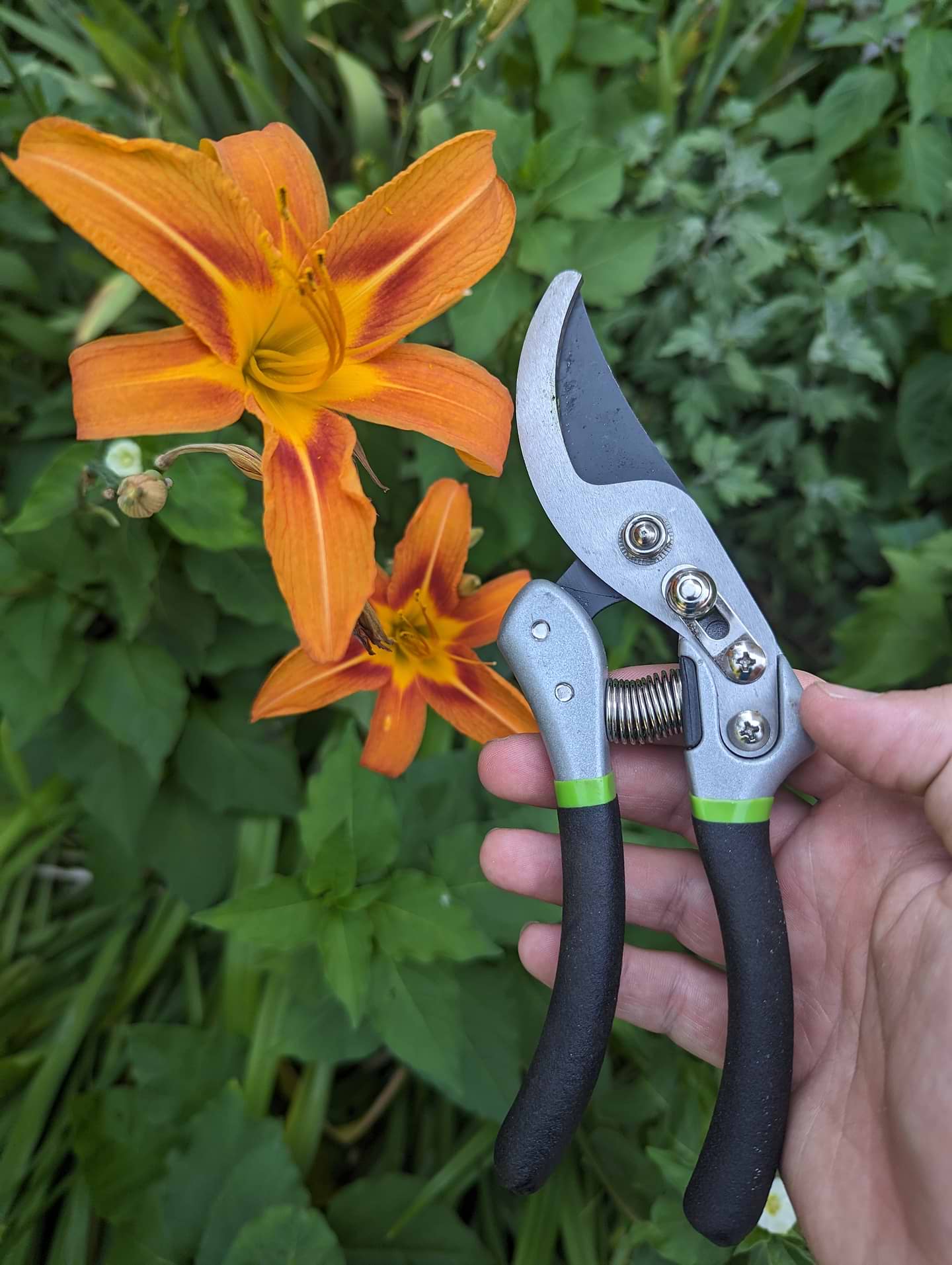 Удобный секатор, пользуюсь на протяжении недели. Хорошо режим, и удобно продуман механизм защёлки. Ручка прорезиненная, секатор достаточно тяжёлый. Крупные ветки ещё не резал, но уверен, что он справится.
