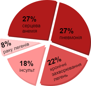 Ми проводимо понад 90% свого часу в приміщенні. Погана новина полягає в тому, що повітря всередині часто до 10 разів забруднене, ніж зовні. Причини загибелі внаслідок забруднення повітря в приміщенні: