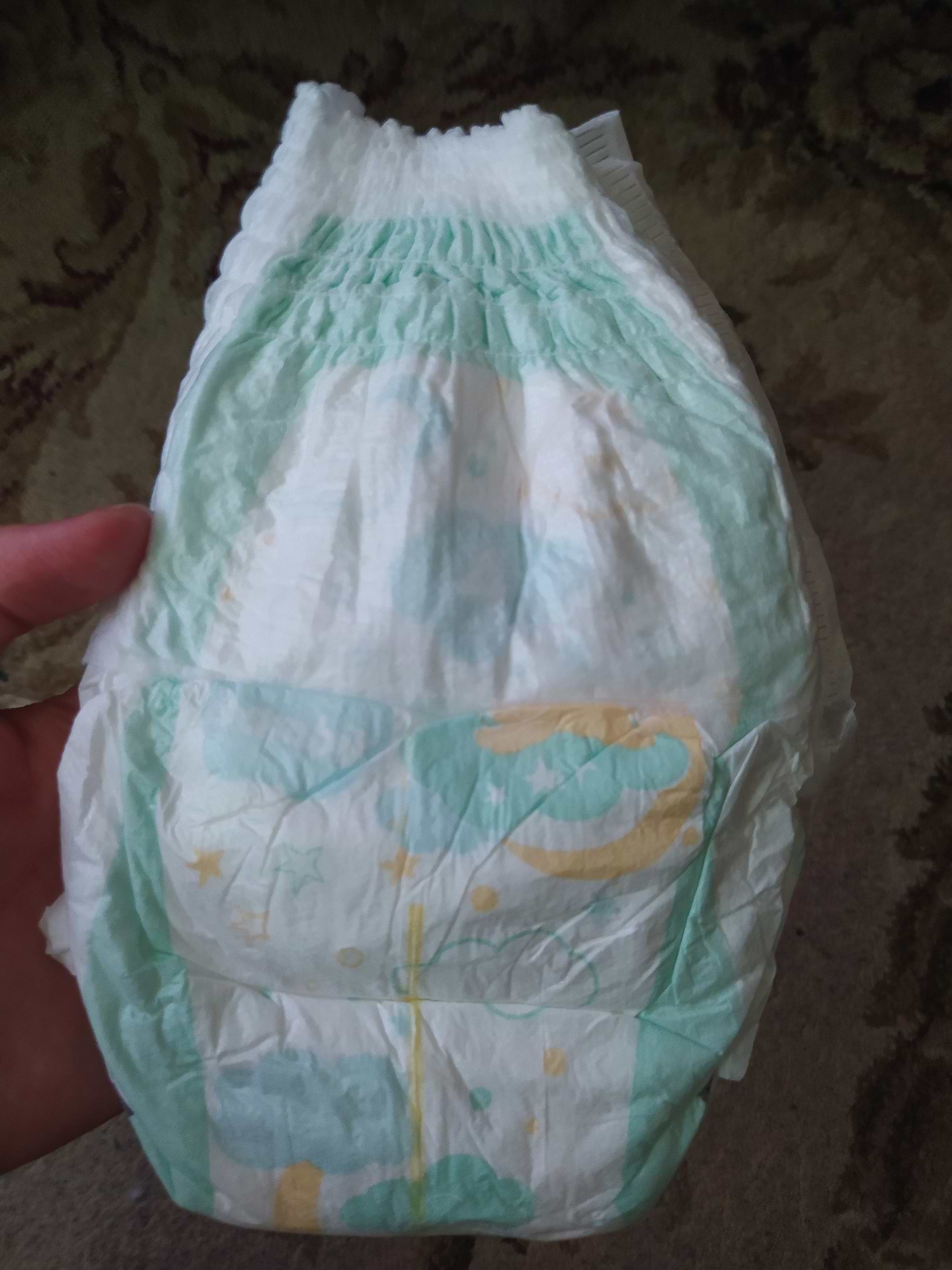 Непогані бюджетні підгузки-трусики. Ніч наврядчи витримають, а вдень, при регулярній заміні, не підведуть. Тоненькі, досить широкі між ніжками, не комкуються при наповненні, без запаху. Гарна ціна у Комфі.