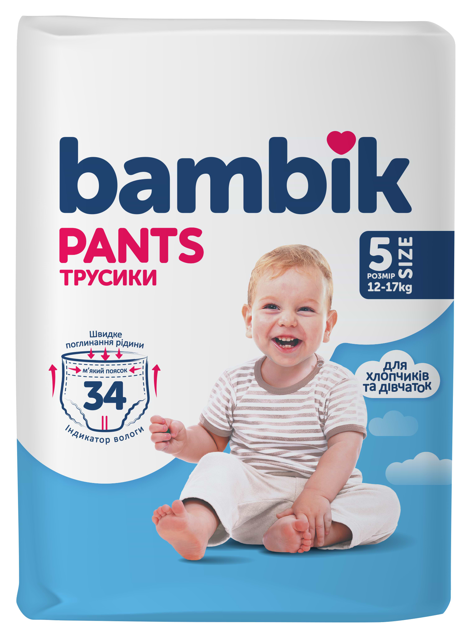 Одноразові підгузки-трусики Bambik Розмір 5 (12-17 кг), 34 шт. (43404800)