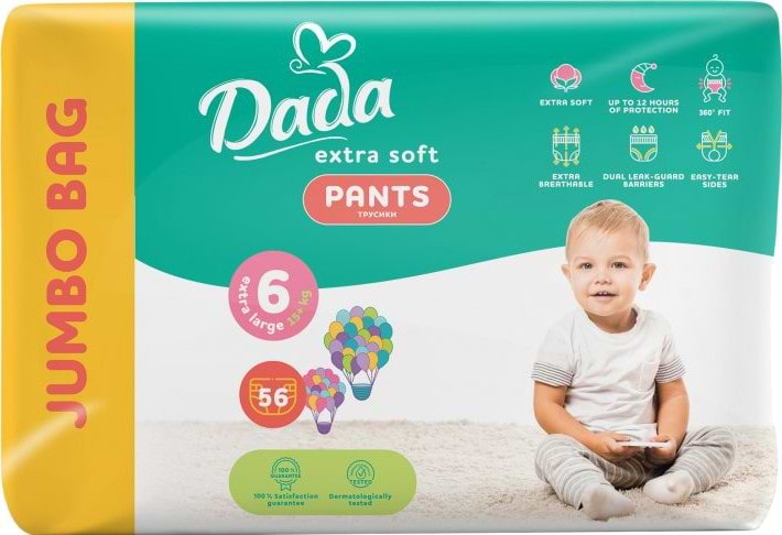 Одноразові підгузки-трусики Dada Extra Soft Розмір 6 XL (15+ кг), 56 шт. (980801)
