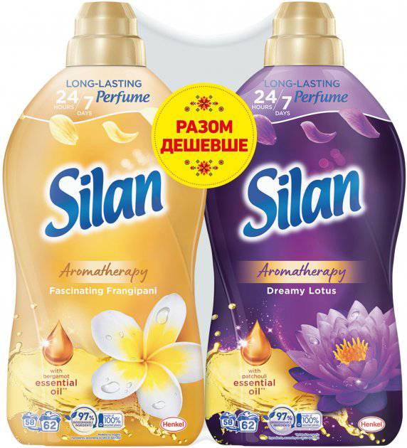 Ополіскувач для білизни Silan Ароматерапія Казковий Лотос 1,364 л+Захоплюючий Франджіпані 1,364 л