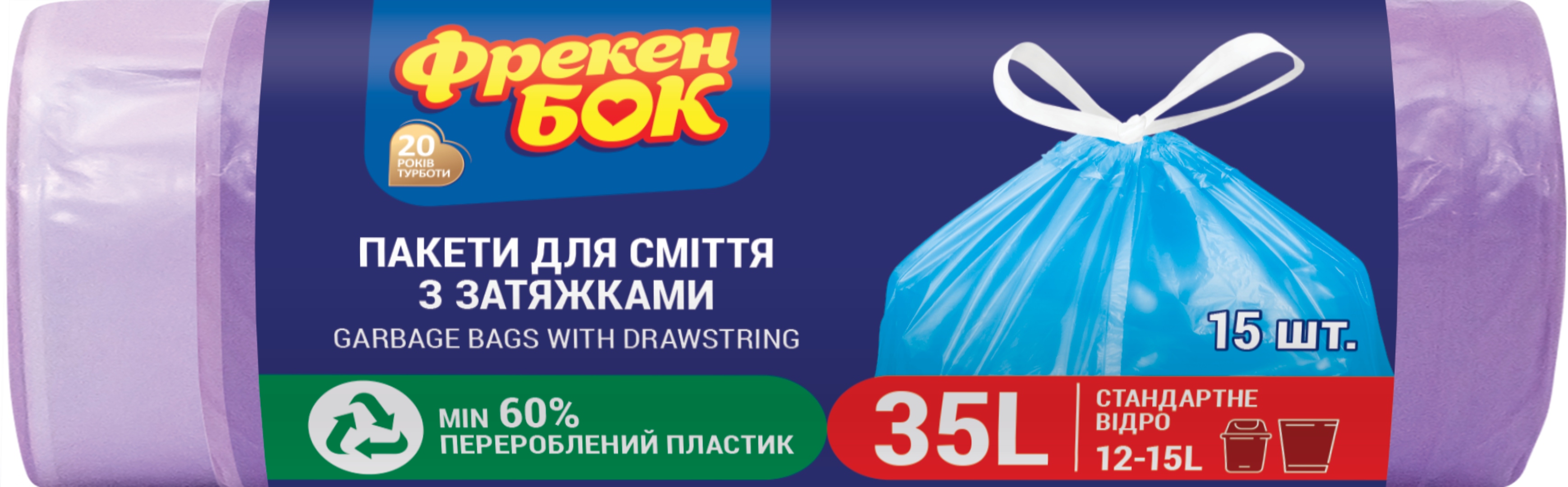 Пакет для сміття Фрекен Бок з затягуванням Стандарт Фіолетовий 35 л 15 шт. (4820048485234)