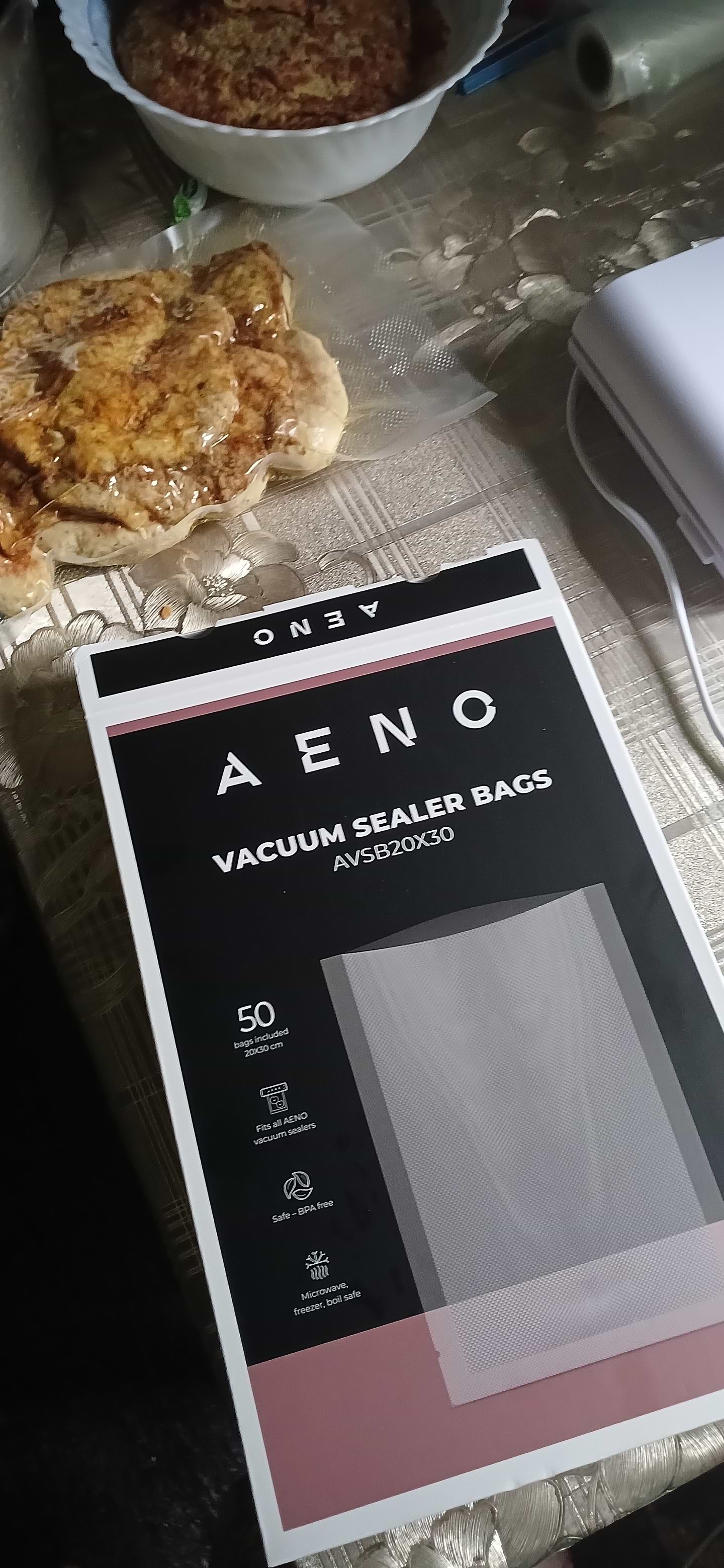 Чудові, міцні пакети, виготовлені з якісних матеріалів, а не з ПВХ, як деякі бюджетні пакети інших китайських виробників. Вже втретє за останній рік купую їх, подобається ними користуватись. Дуже зручно, що ці пакети запаяні з 3-х сторін, що полегшує іх використання при вакуумуванні. Але, на жаль, ціла курка чи качка не поміститься, ні маленька, ні велика.