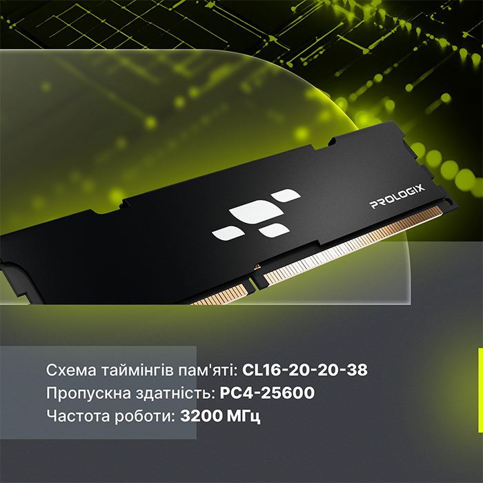 Prologix використовує сучасний стандарт DDR4, який гарантує підвищену пропускну здатність. Схема таймінгів 16-20-20-38 забезпечує швидкий доступ до даних, що особливо важливо для ігор або мультимедійних програм. Модуль виконаний у формфакторі DIMM і оснащений пасивним охолодженням у вигляді радіатора, що забезпечує стабільну роботу навіть при тривалих навантаженнях.