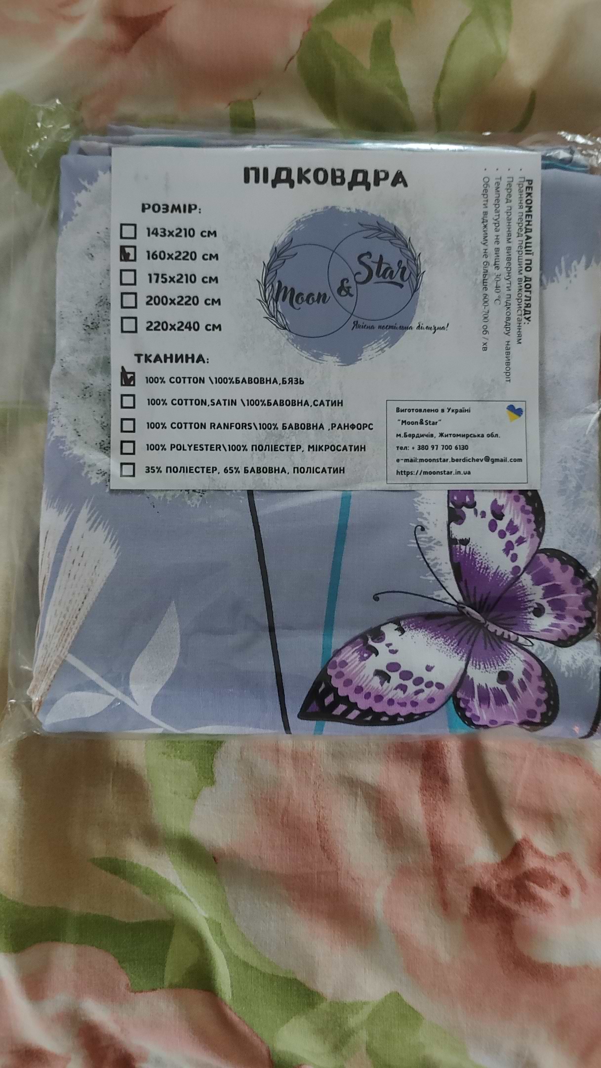 | Розмір підковдри |