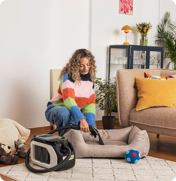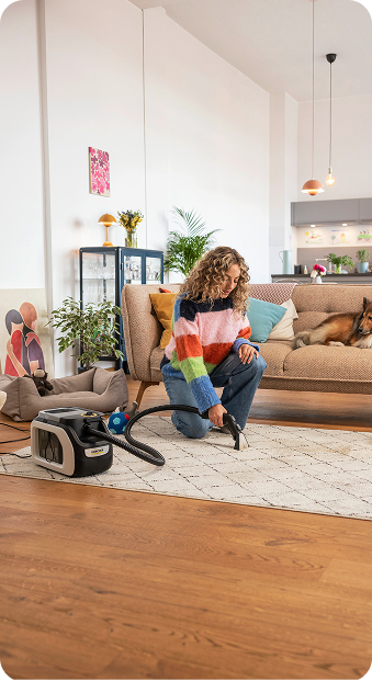 Незалежно від активності ваших чотирилапих, SE 3 Compact Floor швидко та ефективно видаляє шерсть, бруд і плями з килимів та улюблених зон перебування. Ви отримуєте відчуття чистоти та спокою, а ваші улюбленці — ідеально свіжу і комфортну зону для відпочинку.