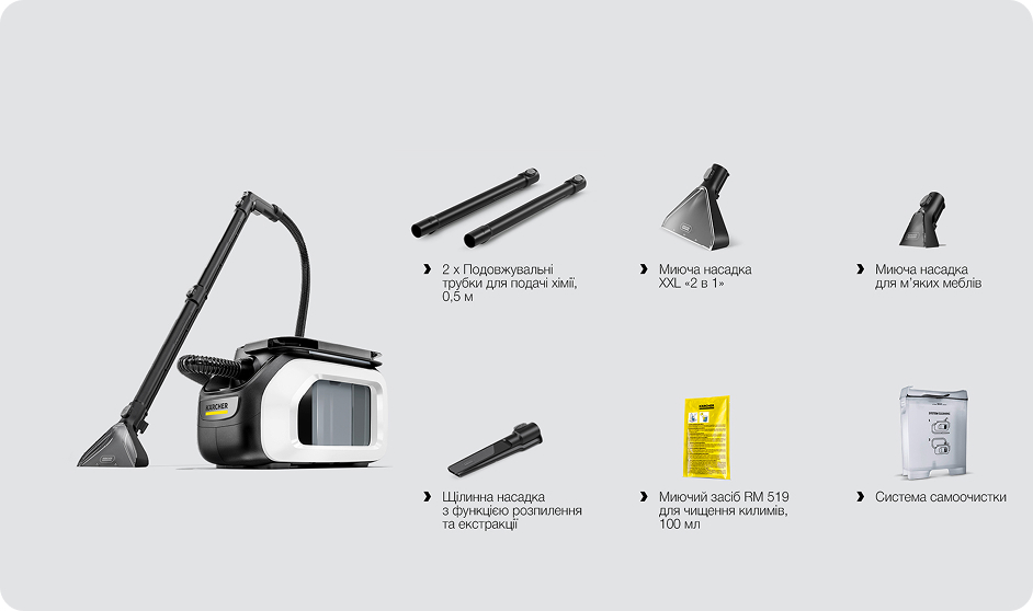 Миючий пилосос Karcher акуратно та ефективно очищає салон автомобіля, автокрісла й дитячі коляски, видаляючи плями та накопичений бруд. Після прибирання поверхні залишаються свіжими, доглянутими й приємними на дотик, створюючи комфортне середовище для всієї родини.